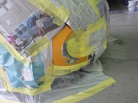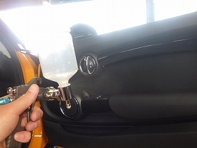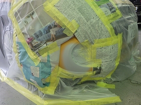 塗布作業の後、塗装準備(足付け、マスキング、脱脂、エアブロー)を行い、