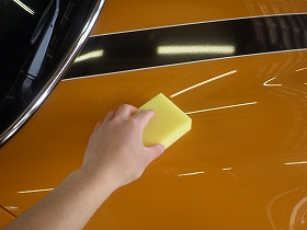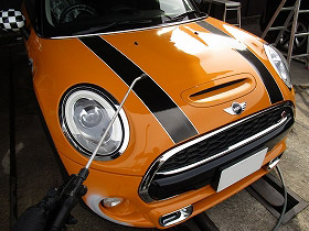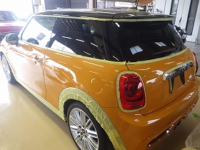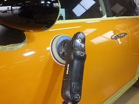 マスキング作業の後、ポリッシャーを使用して磨き作業を行いました。