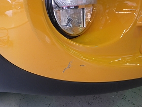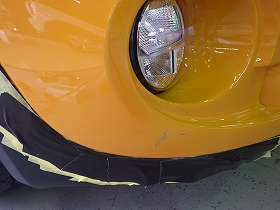 右フロント周り損傷、コーティング、マイバリア施工でのお預かりにリます。