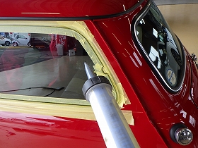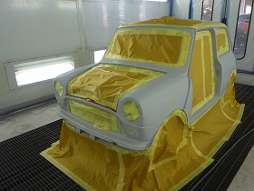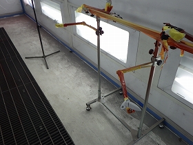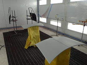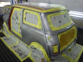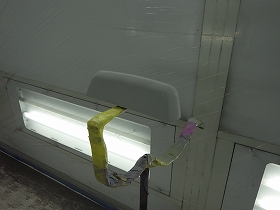 乾燥後、塗装準備(足付け、マスキング、脱脂、エアブロー)を行い、