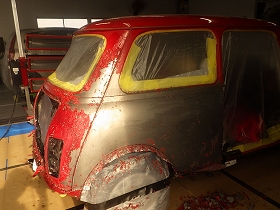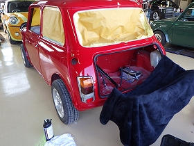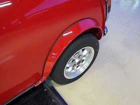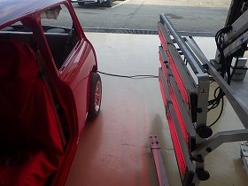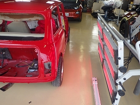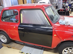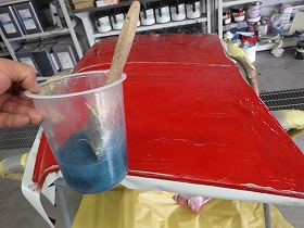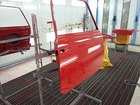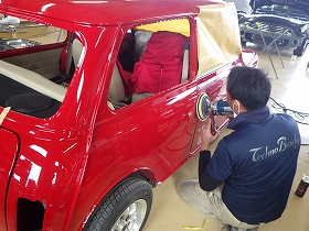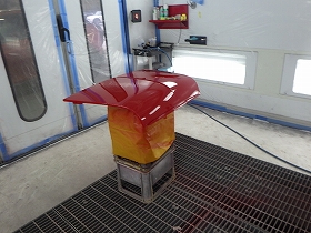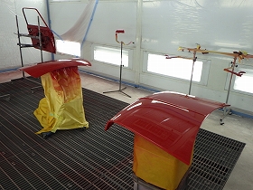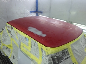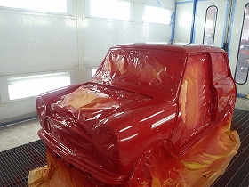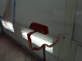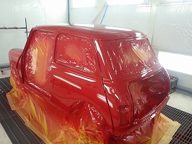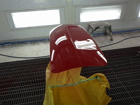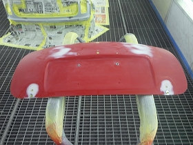 ベースコート(赤)、トップコート(クリヤー)の順に塗装作業を行いました。