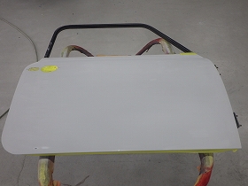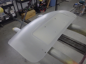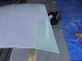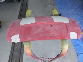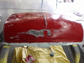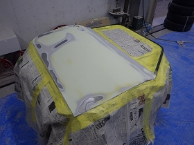 乾燥後、へこみのあると所にパテ付け作業を行いました。