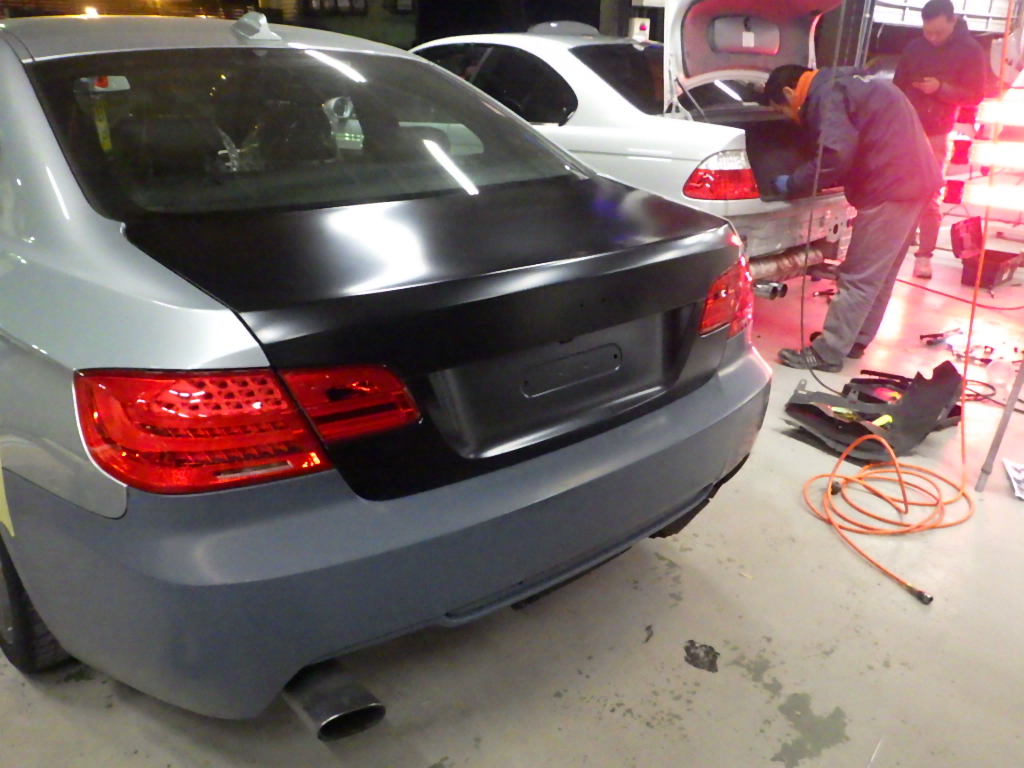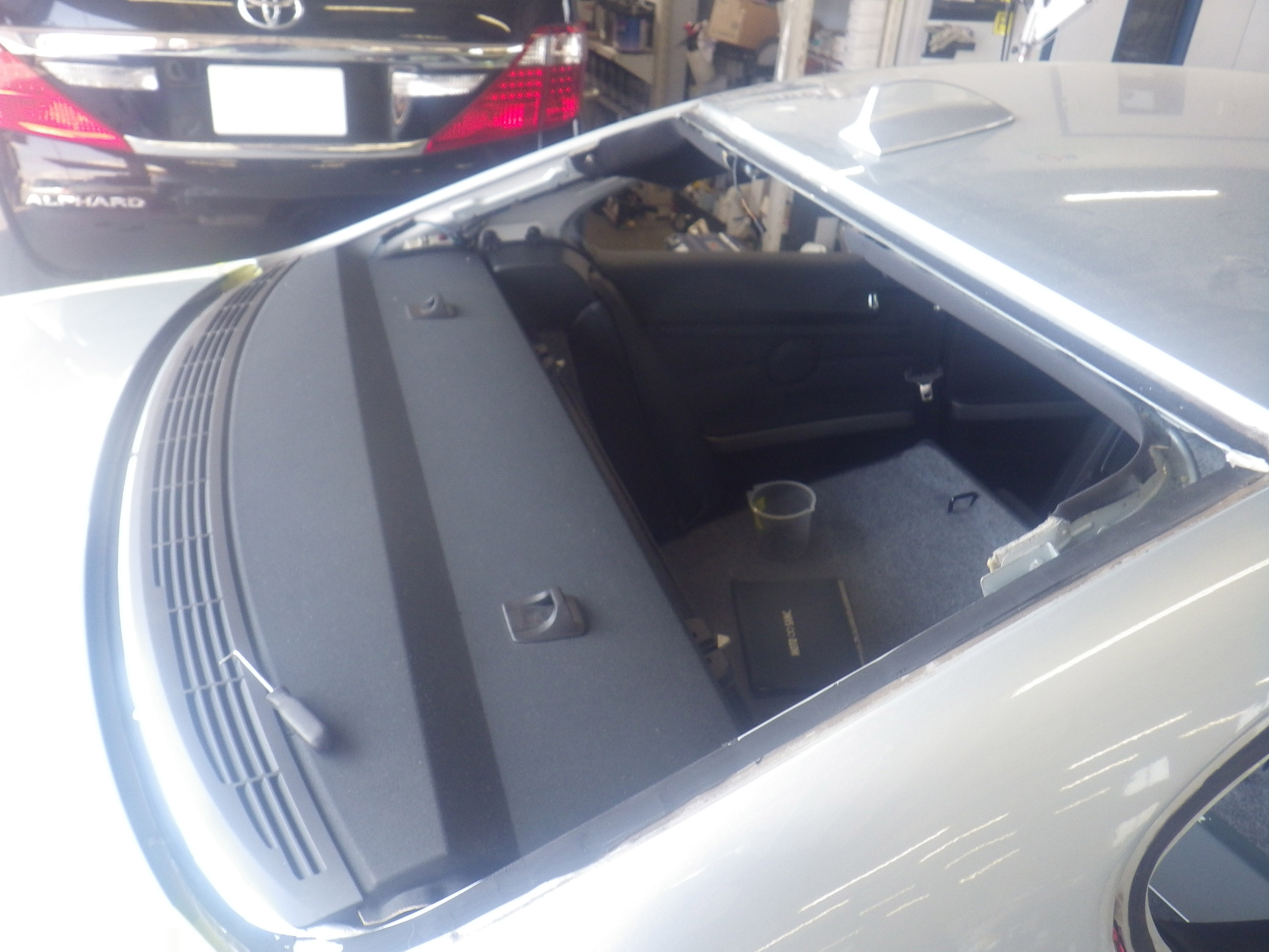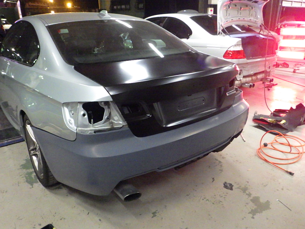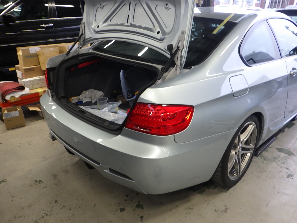 リヤバンパー、トランク交換の為、分解作業を行いました。