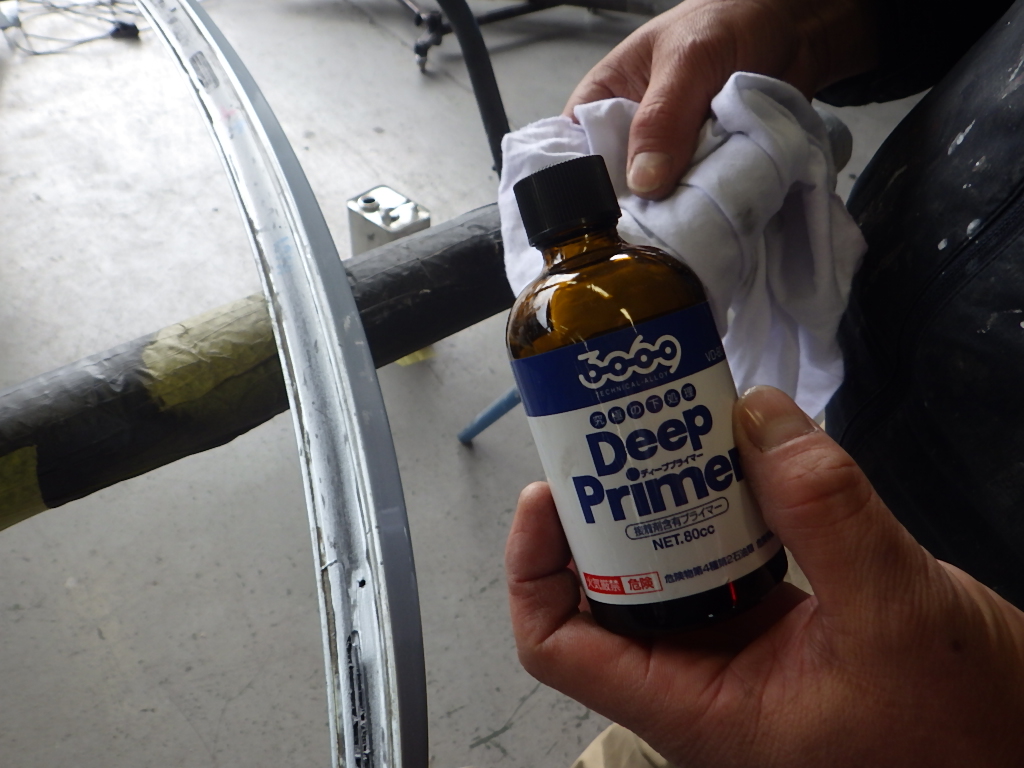 密着性向上の為、ウォッシュプライマーの塗布作業を行いました。