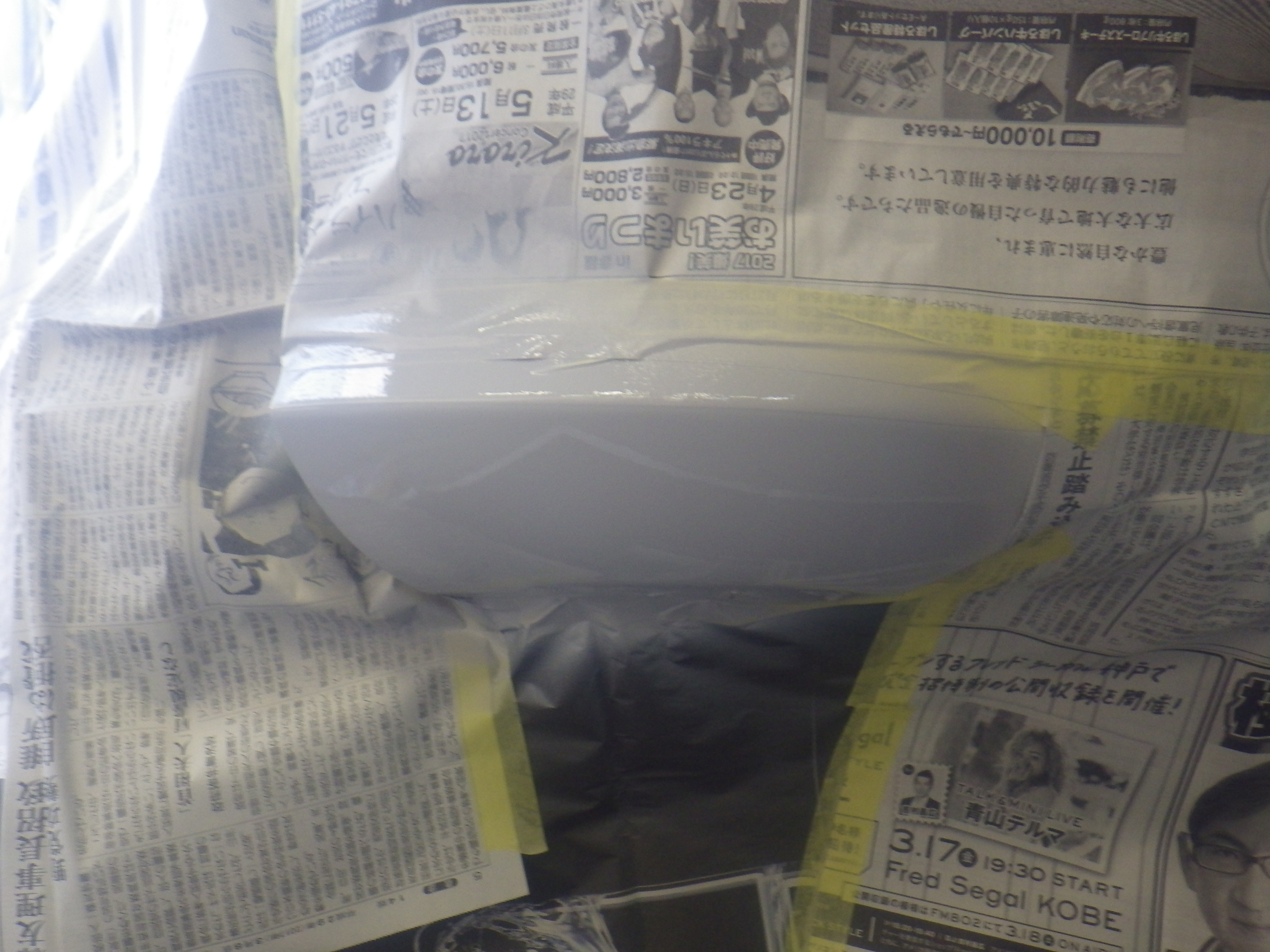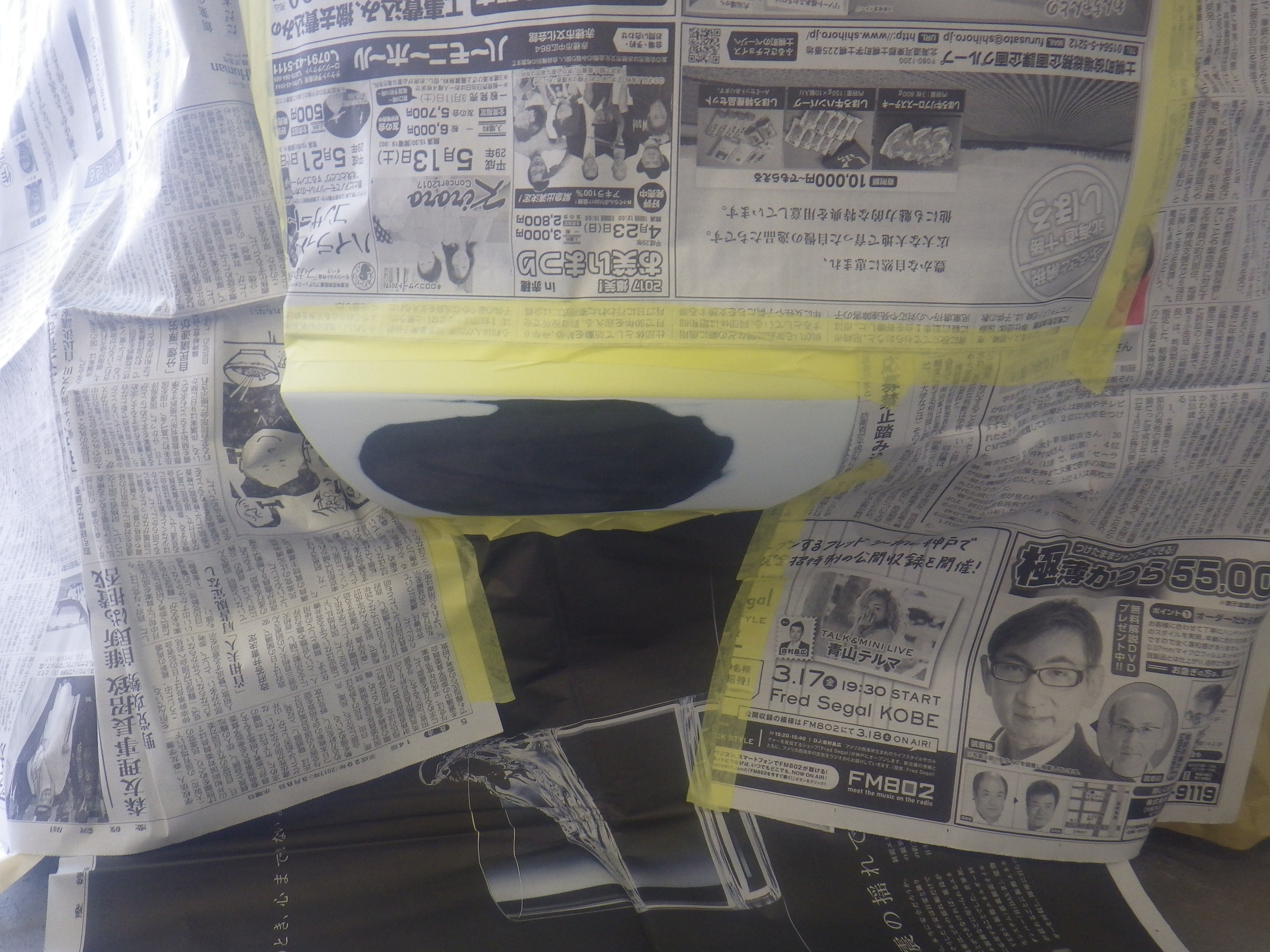 サフェーサー乾燥の後、足付け作業、マスキング作業、脱脂作業、エアブローを行い、