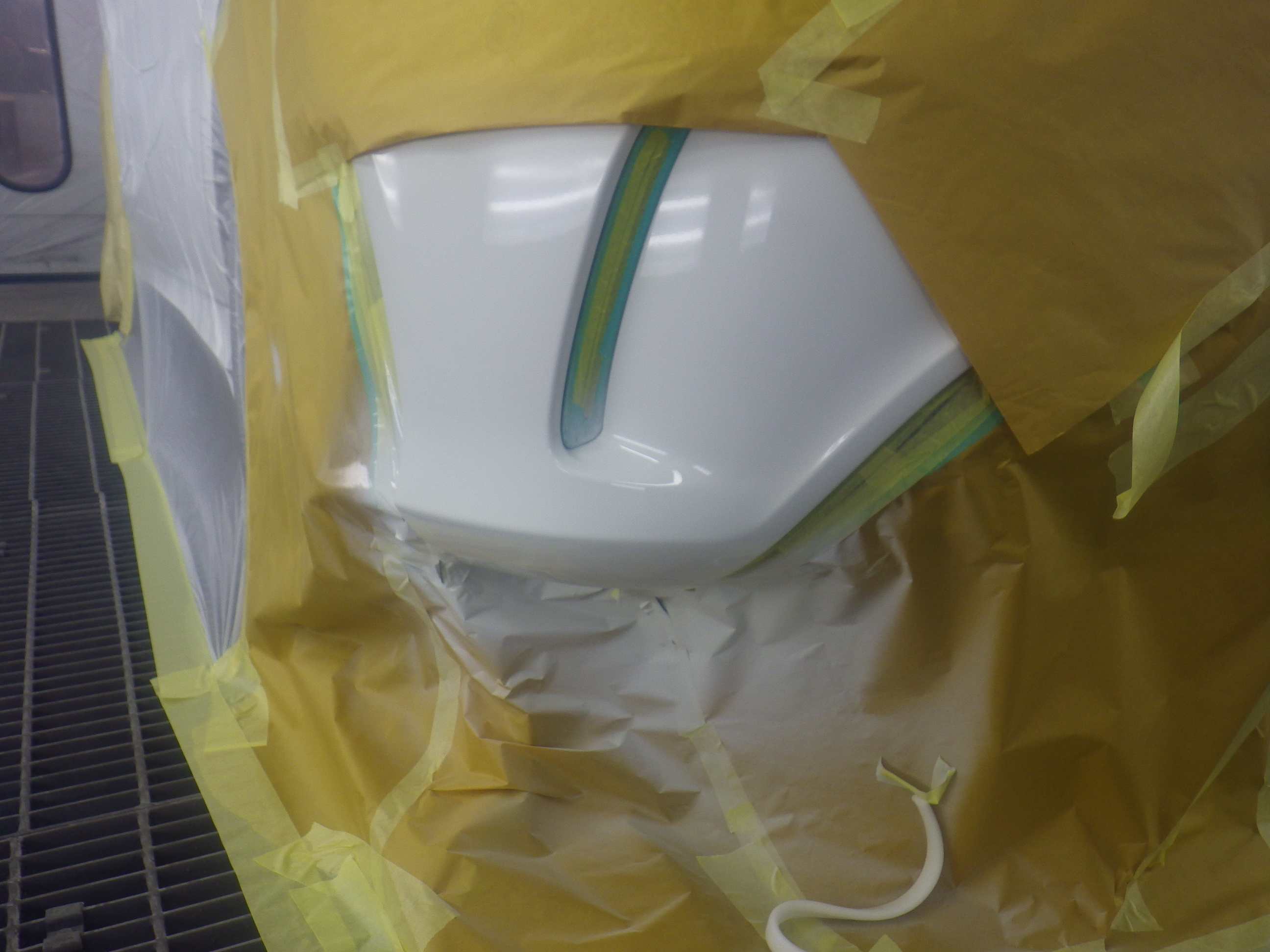 ベースコート(白)、トップコート(クリヤー)の順に塗装作業を行いました。