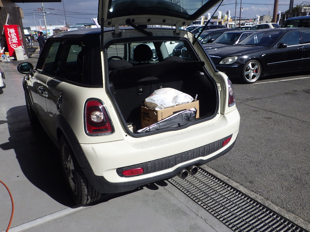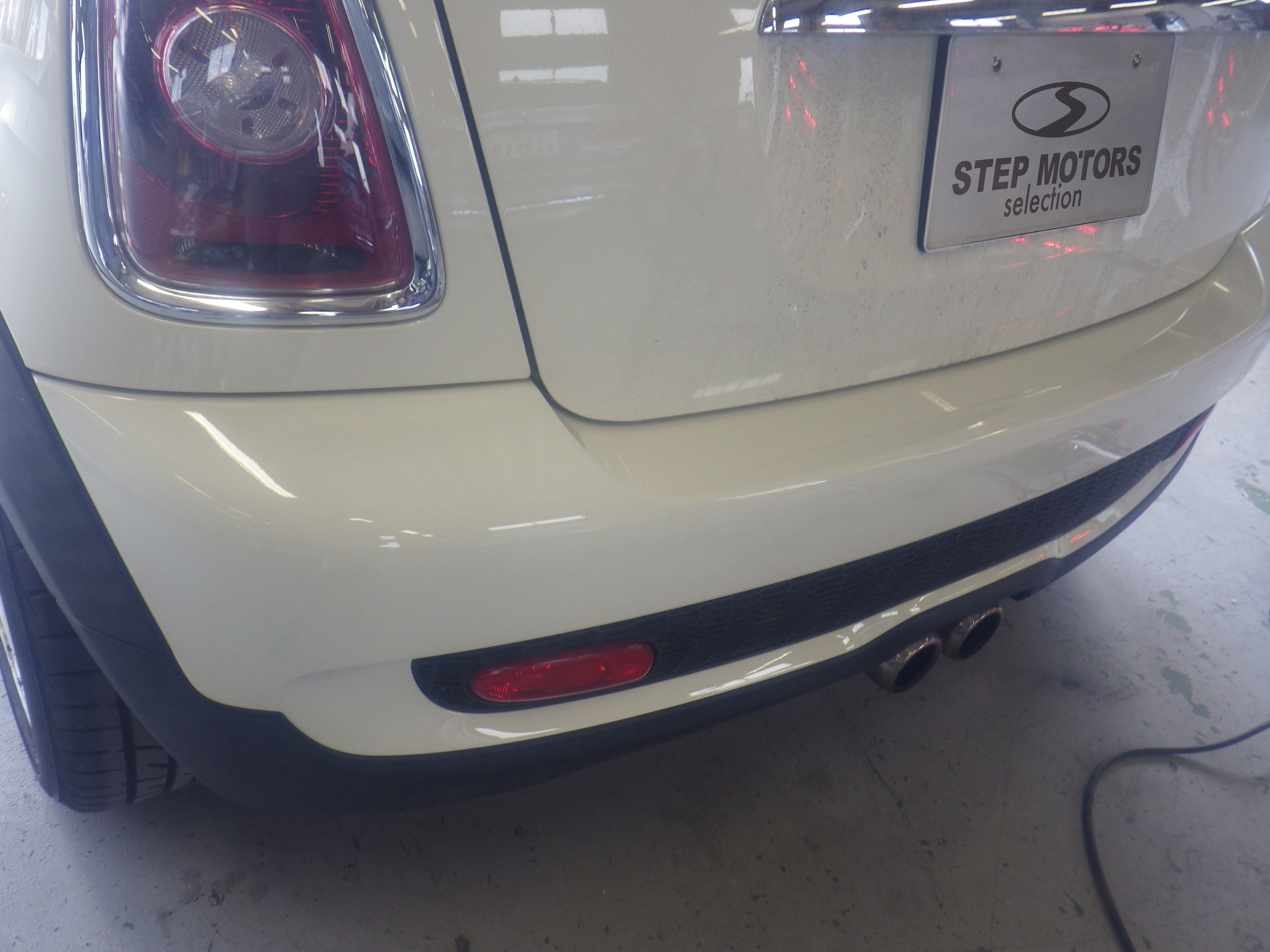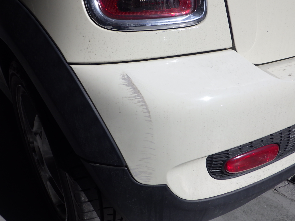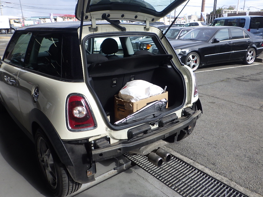 【鈑金塗装】【事故】兵庫県、神戸市、T様、2009y、MINI、R56、リアバンパー損傷へこみ修理レポートです!ありがとうございました。