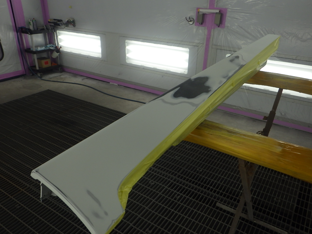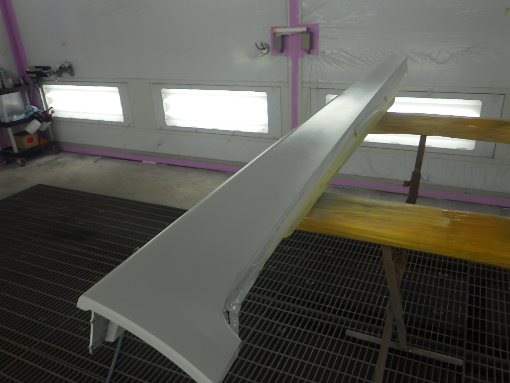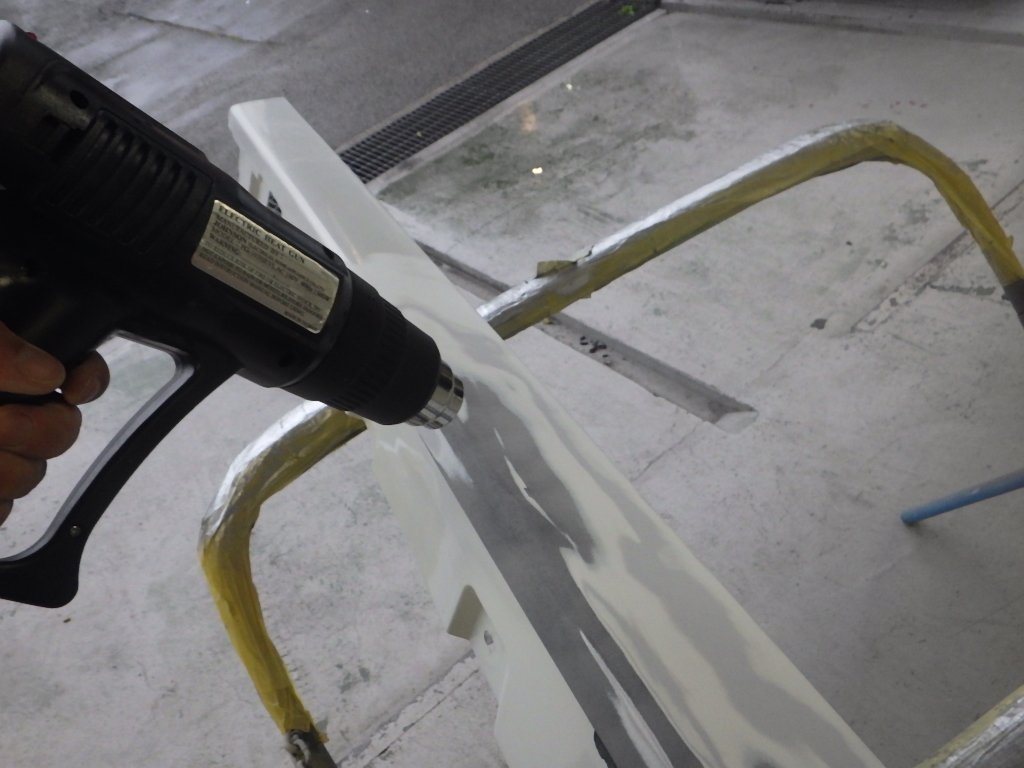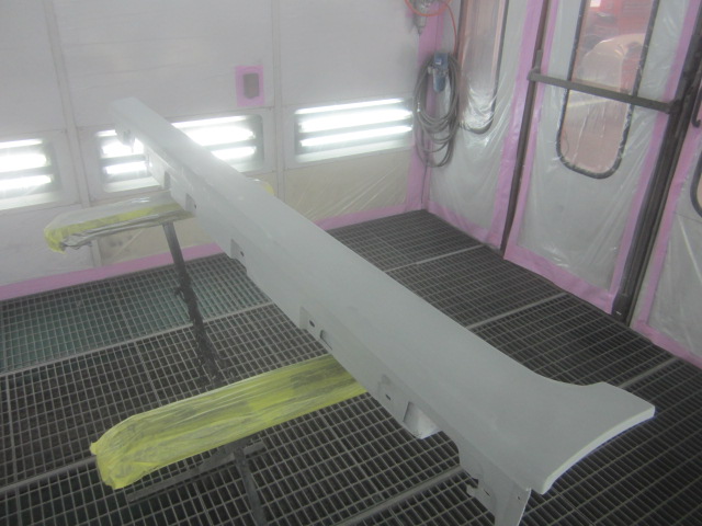 ベースコート(白)、トップコート(クリヤー)の順に塗装作業を行いました。