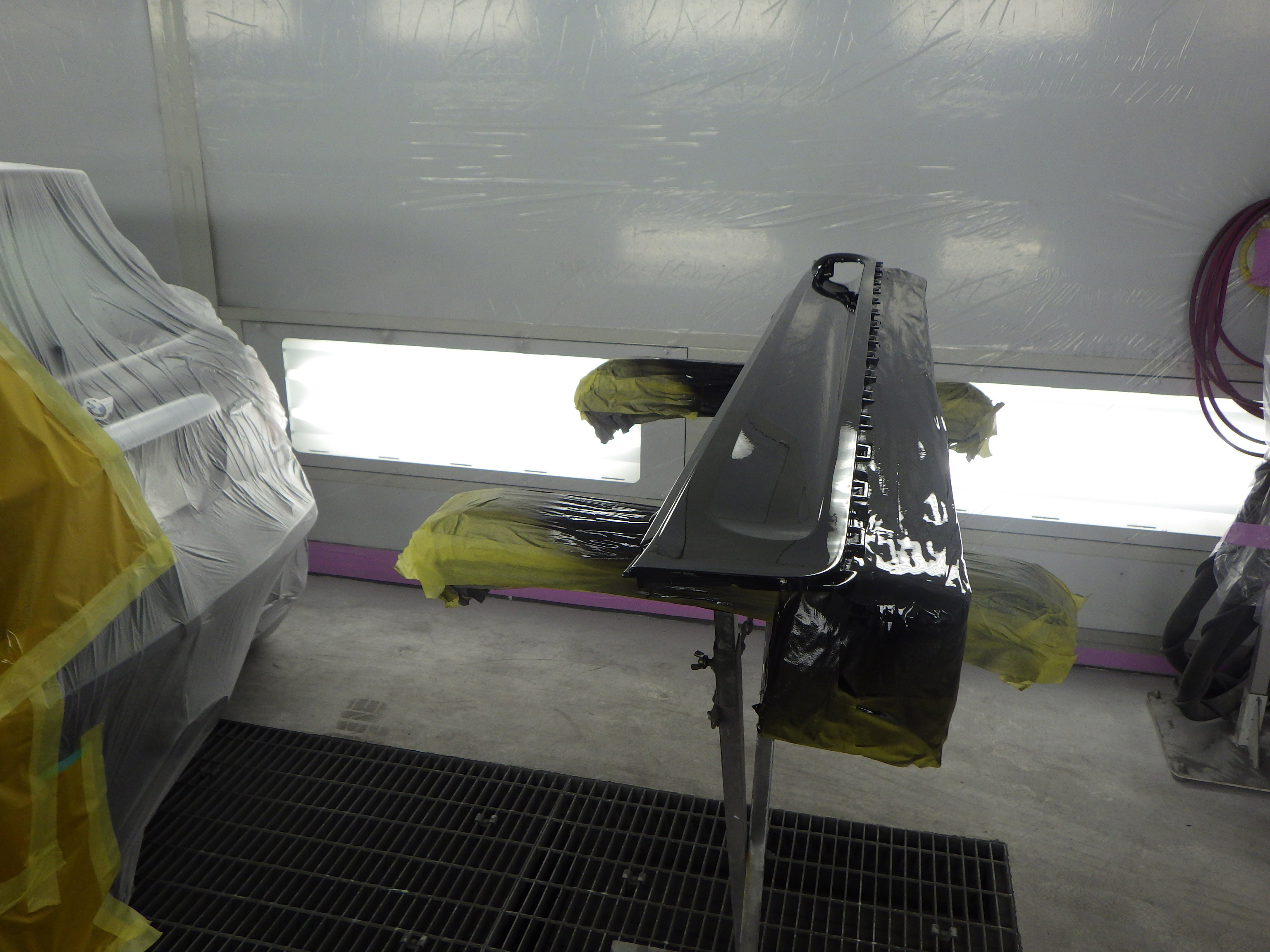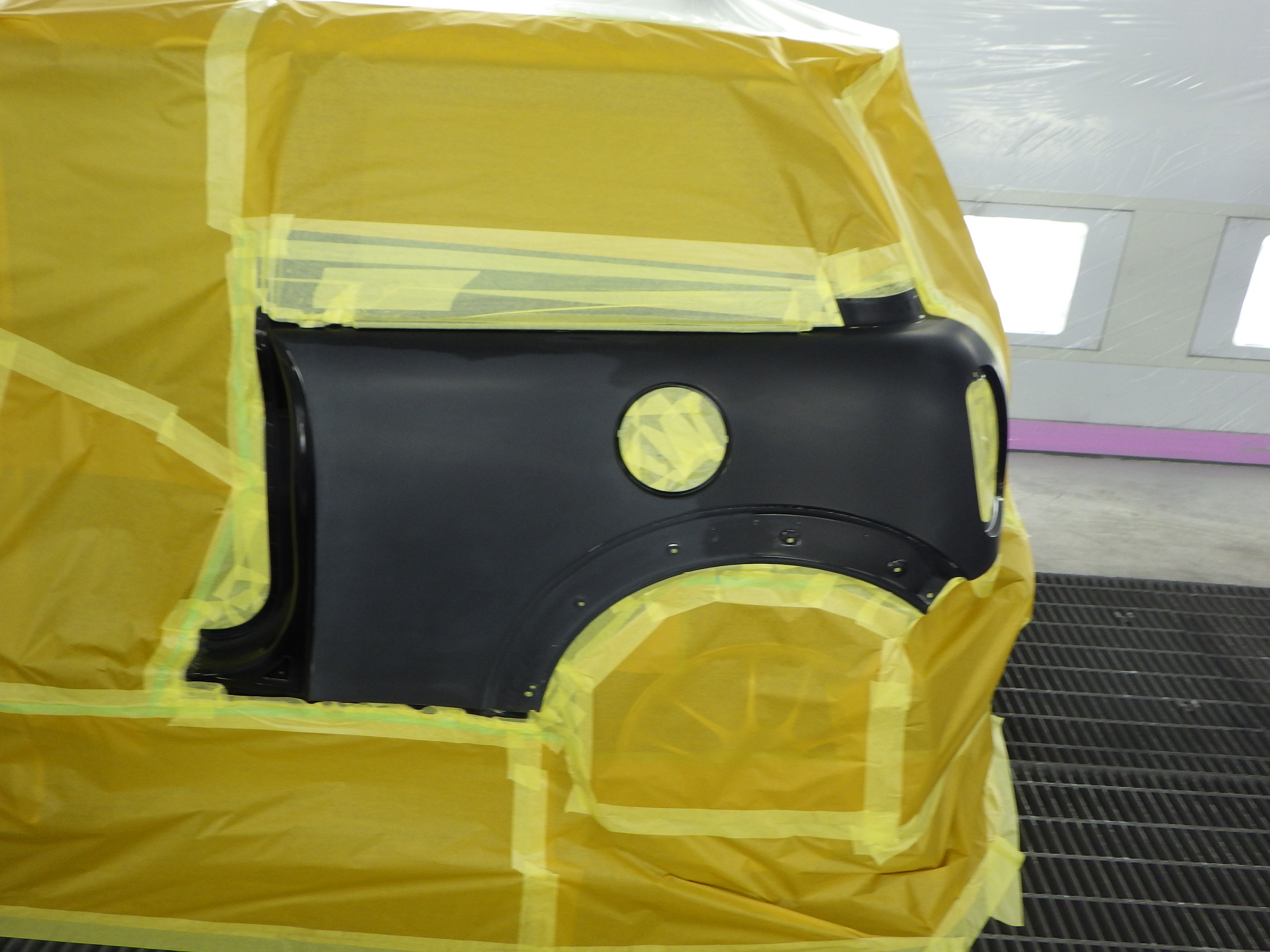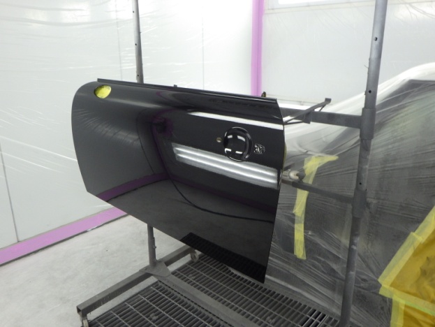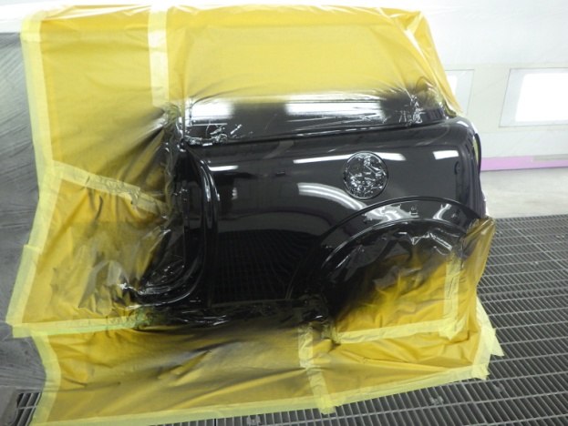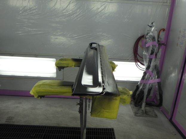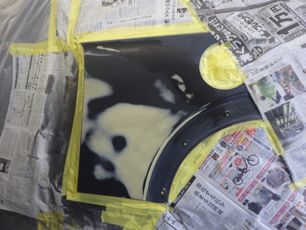 ベースコート(黒)、トップコート(クリヤー)の順に塗装作業を行いました。