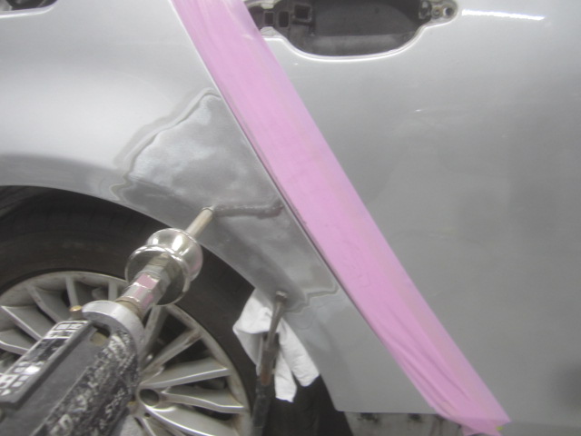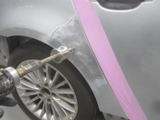 色剥ぎ作業の後、スタットを使用し、パネルの引き出し作業を行いました。