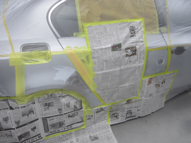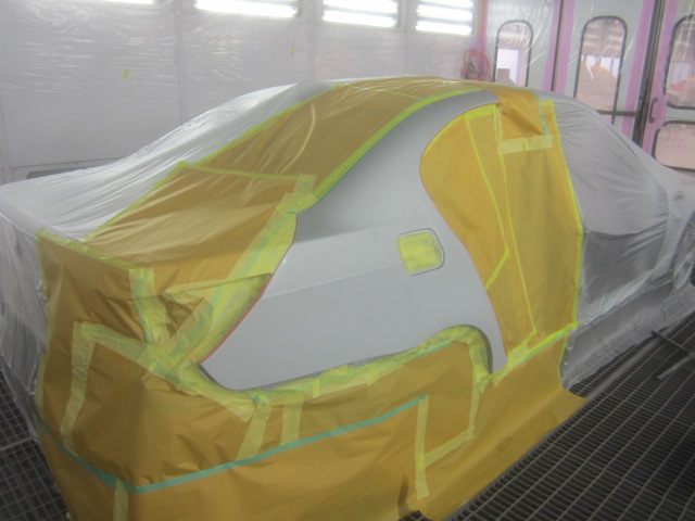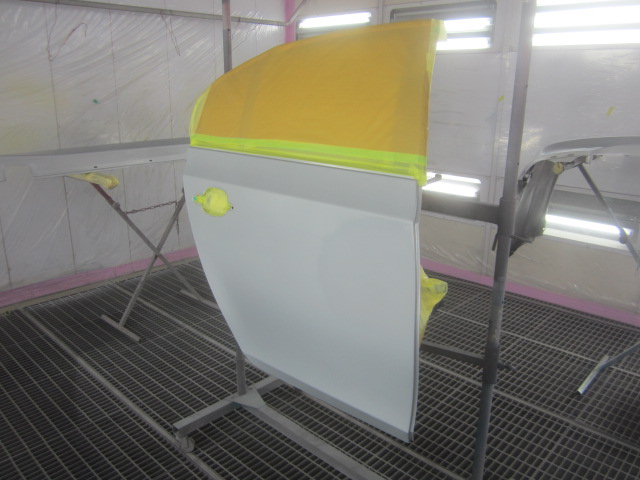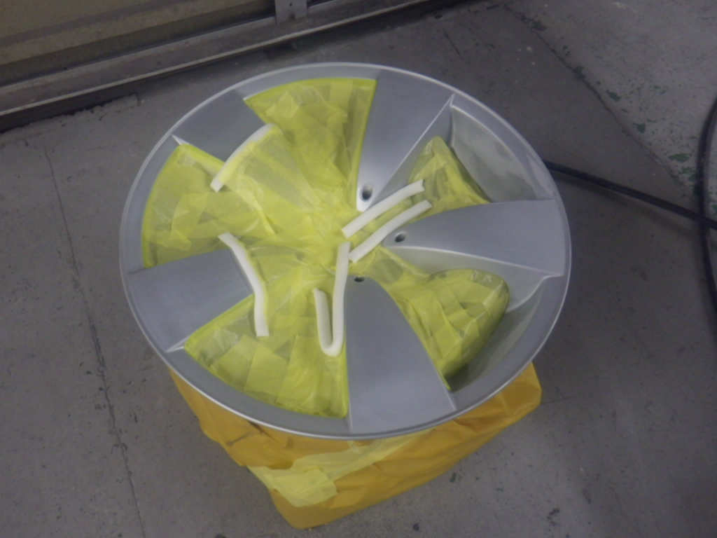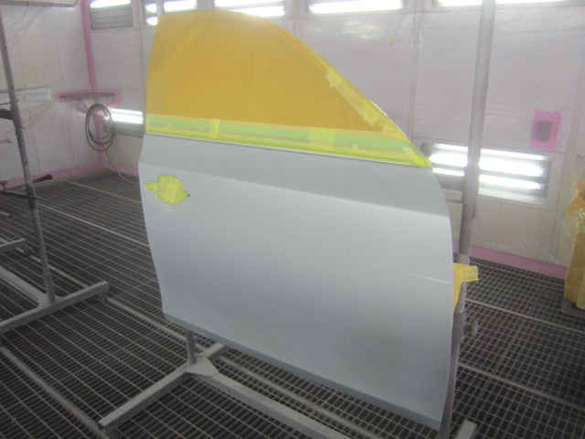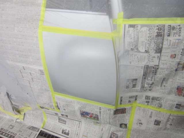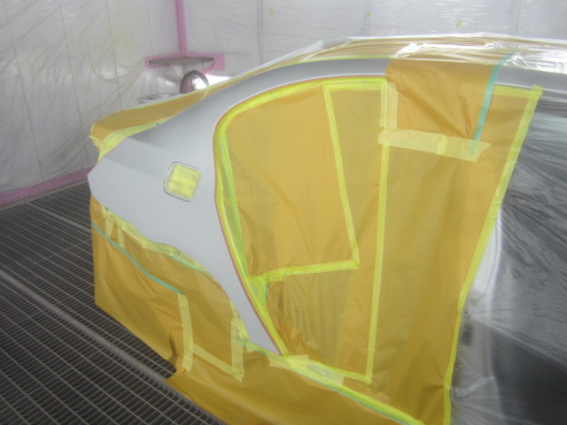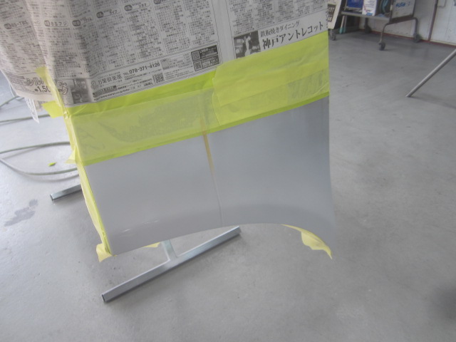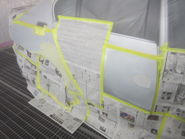 乾燥完了後、塗装準備(足付け、マスキング、脱脂、エアブロー)を行い、