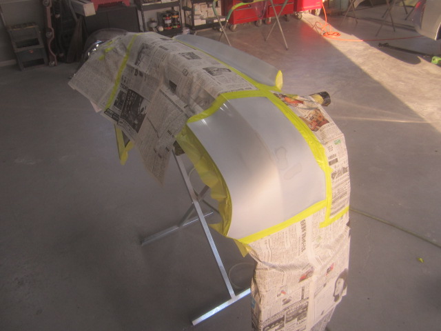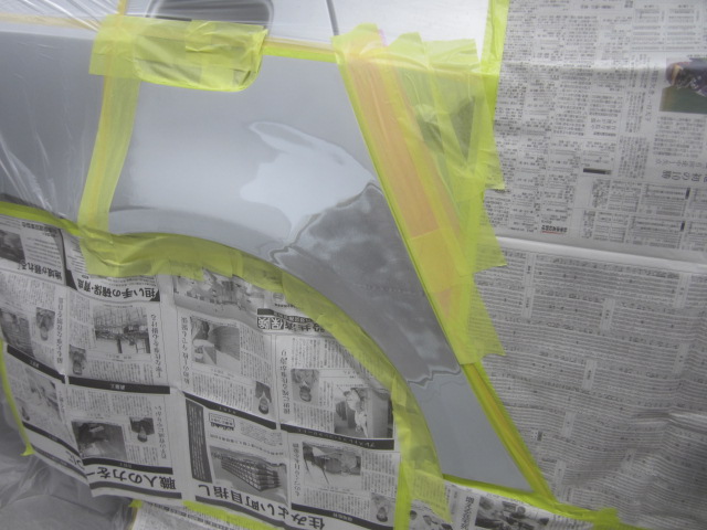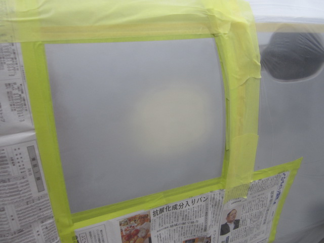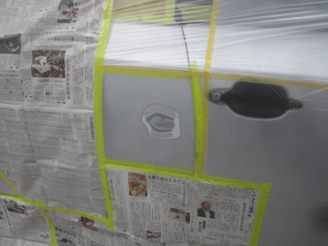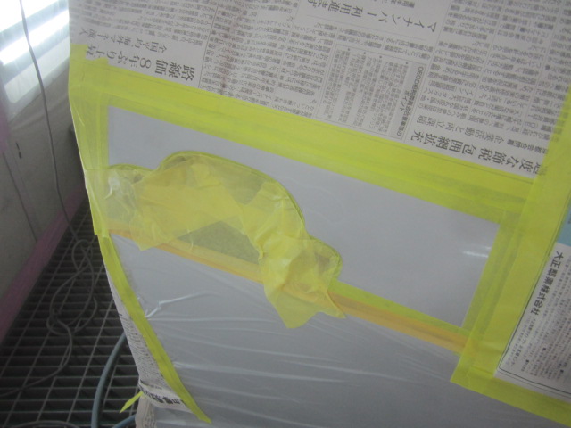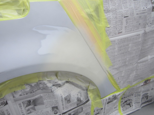 乾燥完了後、パテ付け準備(足付け・脱脂・エアブロー)を行い、