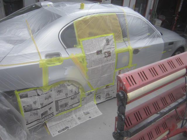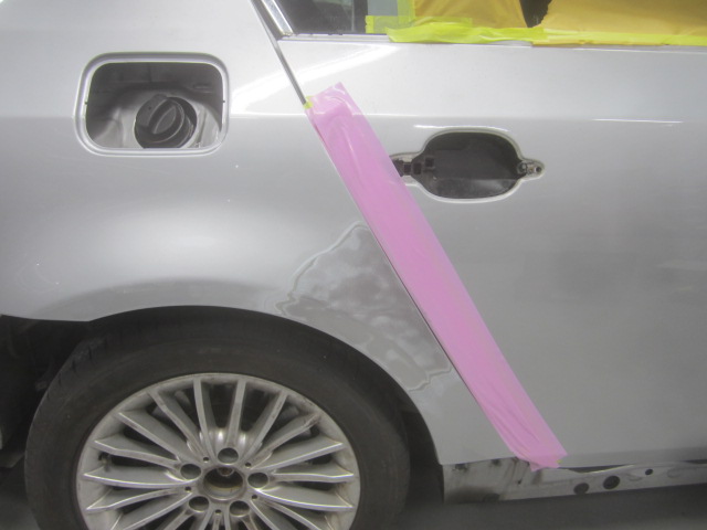 EPプライマーの塗布準備(足付け・マスキング・脱脂・エアブロー)を行い、