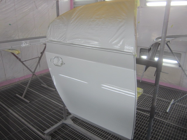 乾燥完了後、組み付け作業、磨き作業(ブツ取り、肌調整)、テール、ドア廻りの雨漏れ確認、