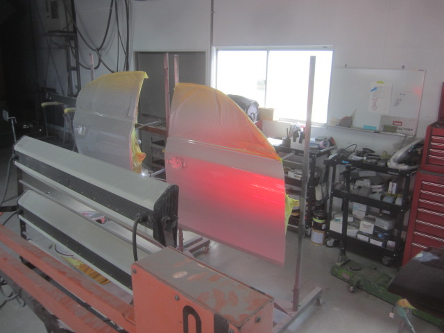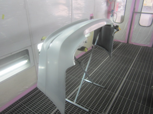 ベースコート(シルバー)、トップコート(クリアー)の順に塗装作業を行いました。