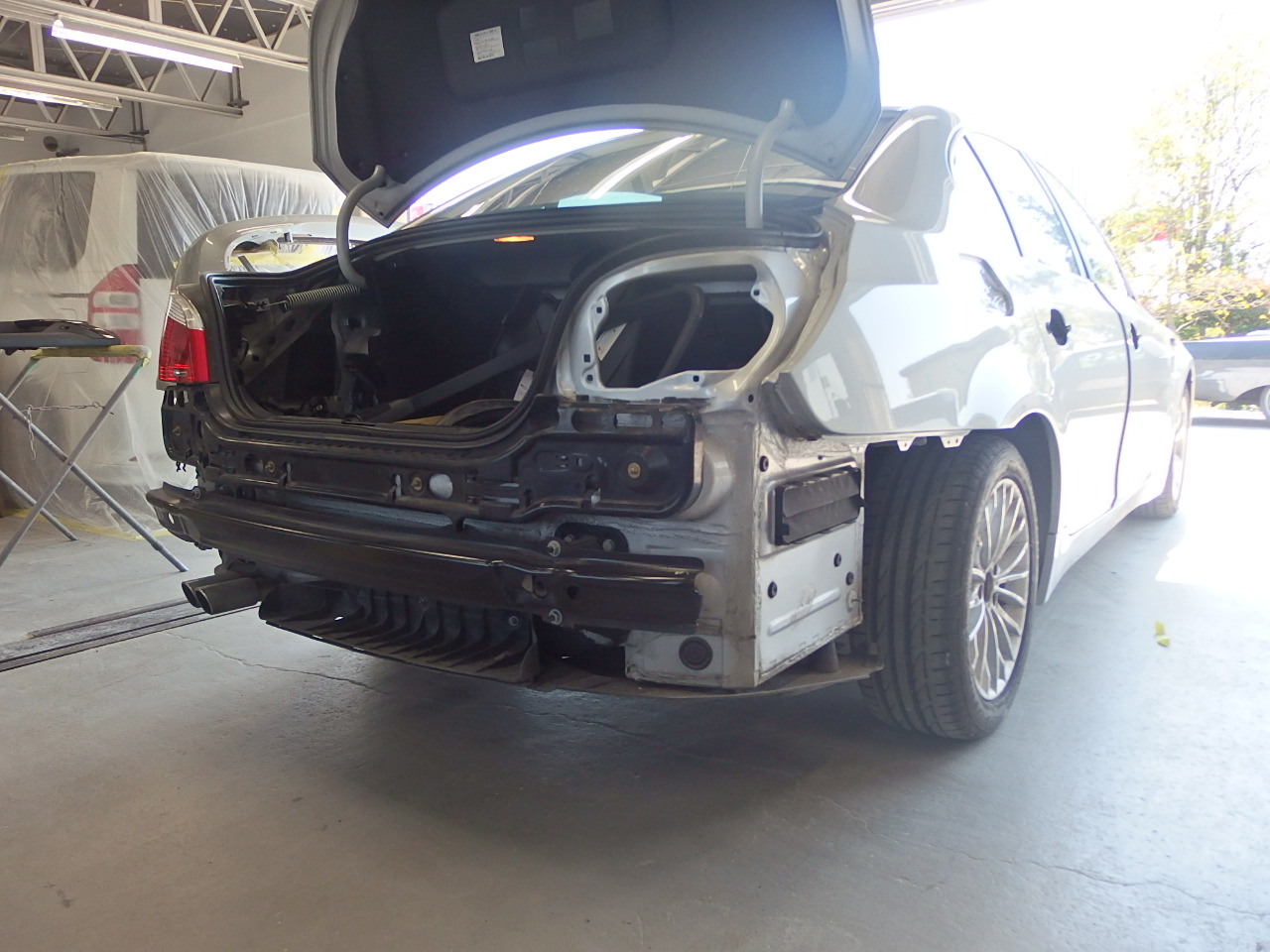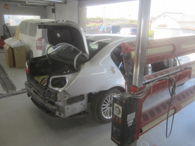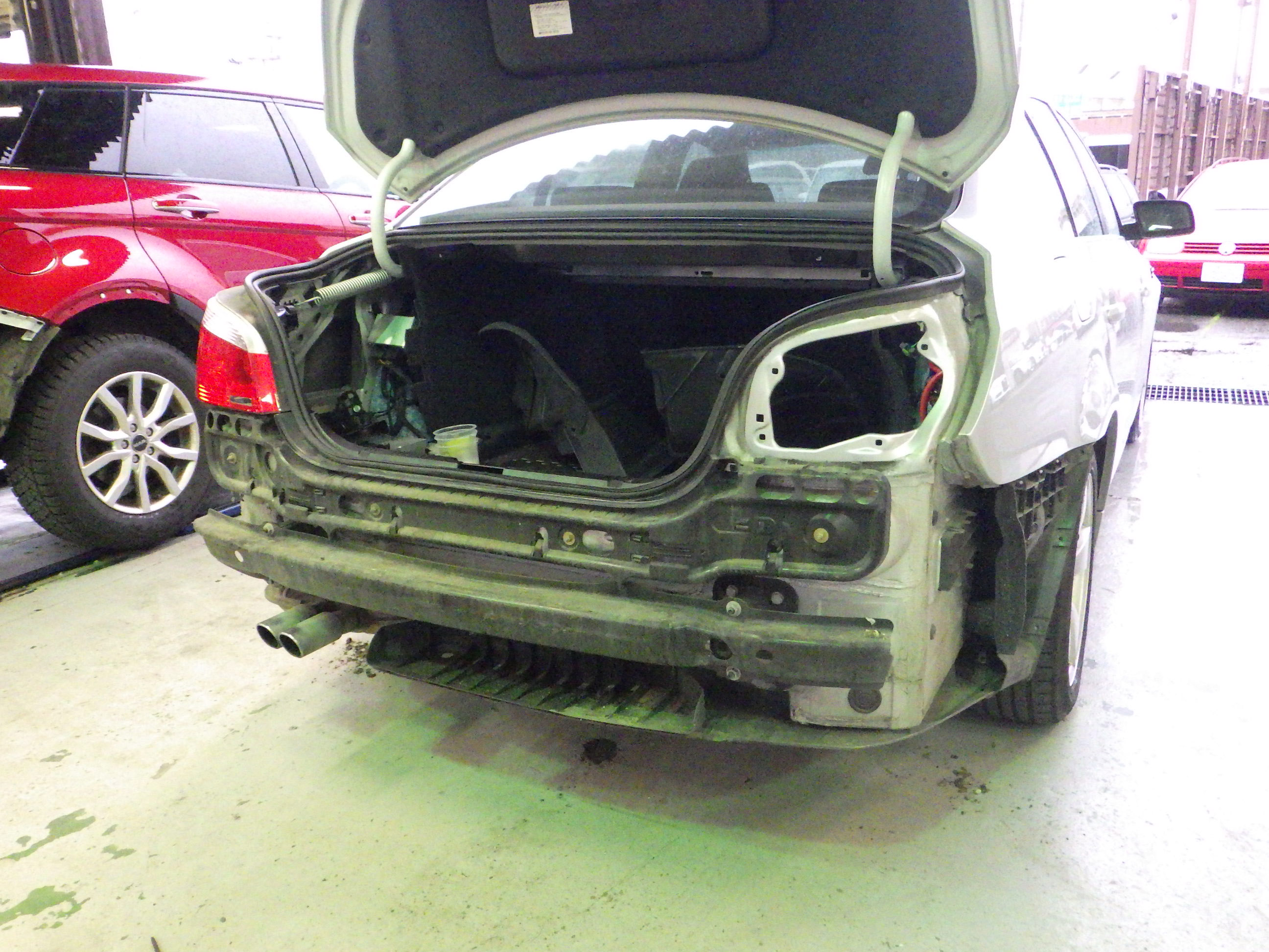 板金作業を行う為、リア廻り、ドア廻りの分解作業を行いました。
