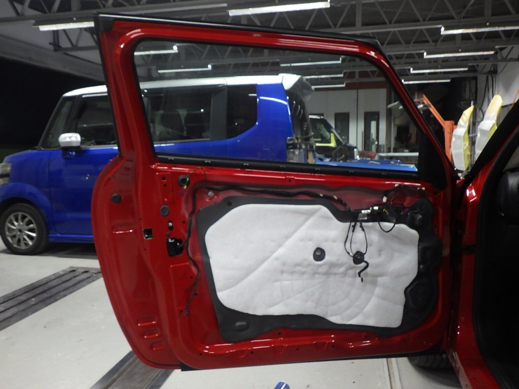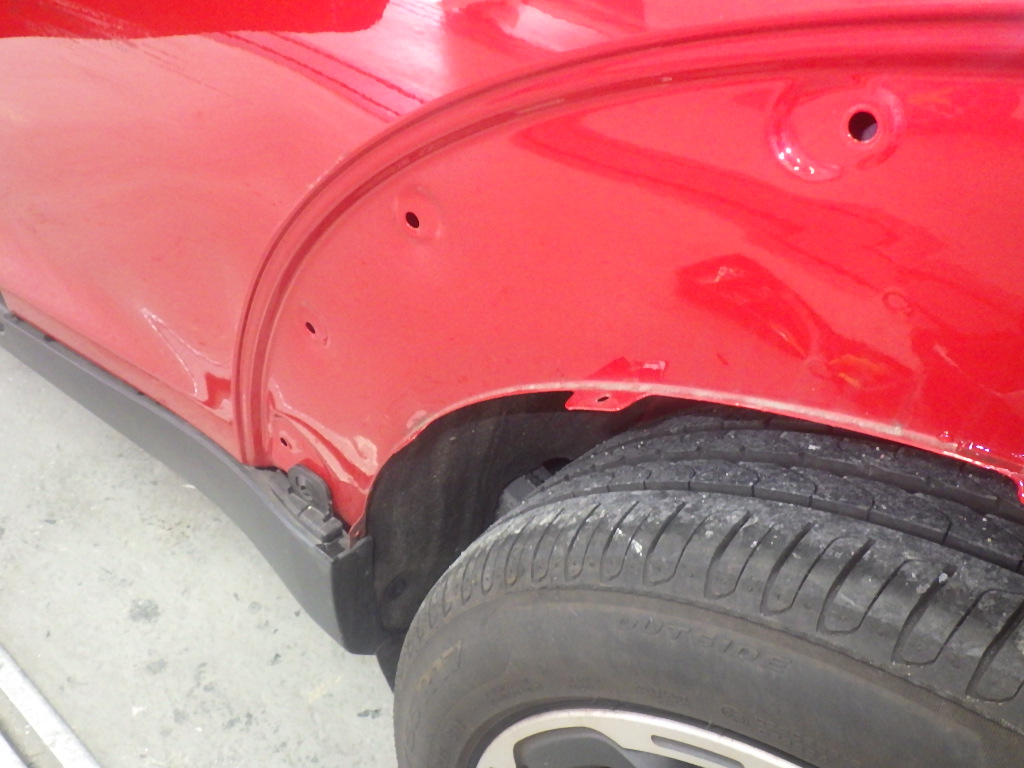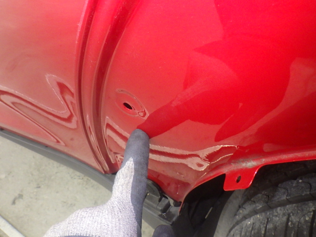 取り外し作業の後、室内側から損傷箇所の板金作業を行いました。