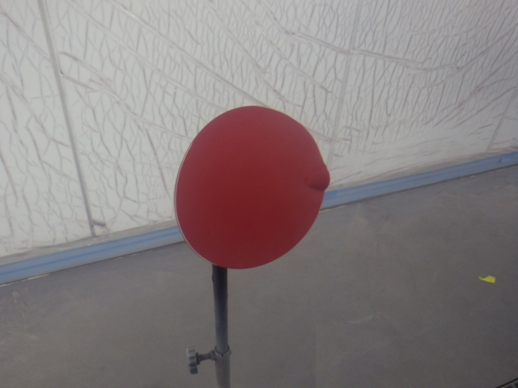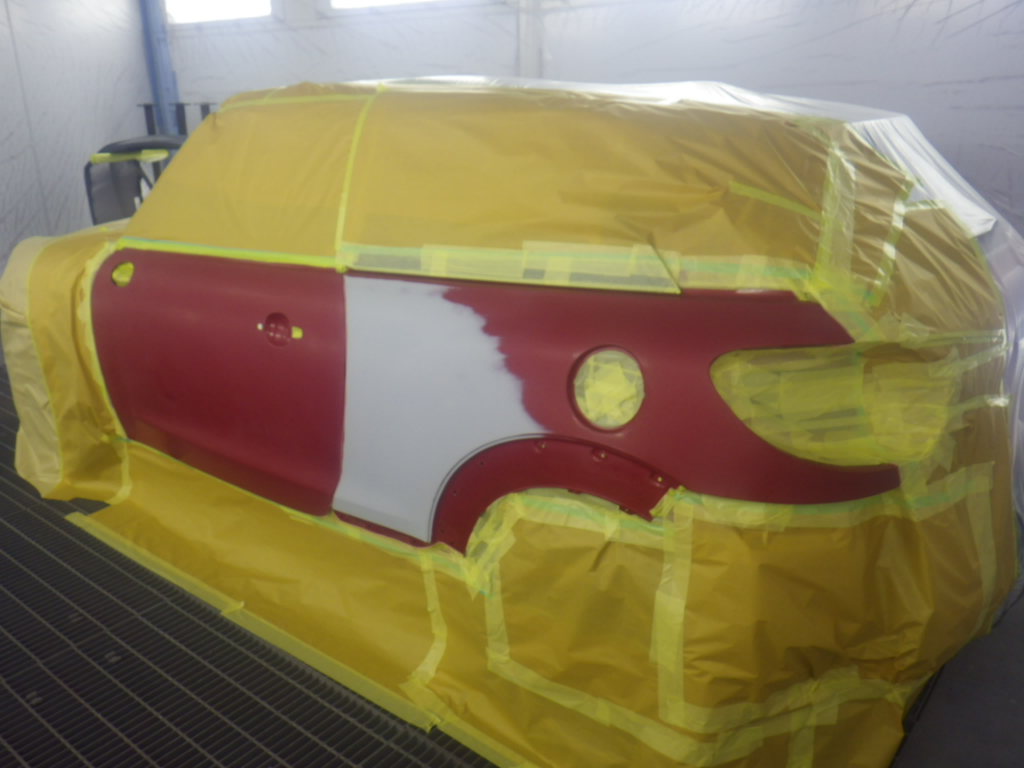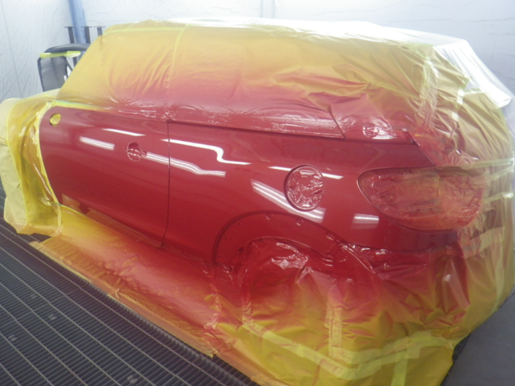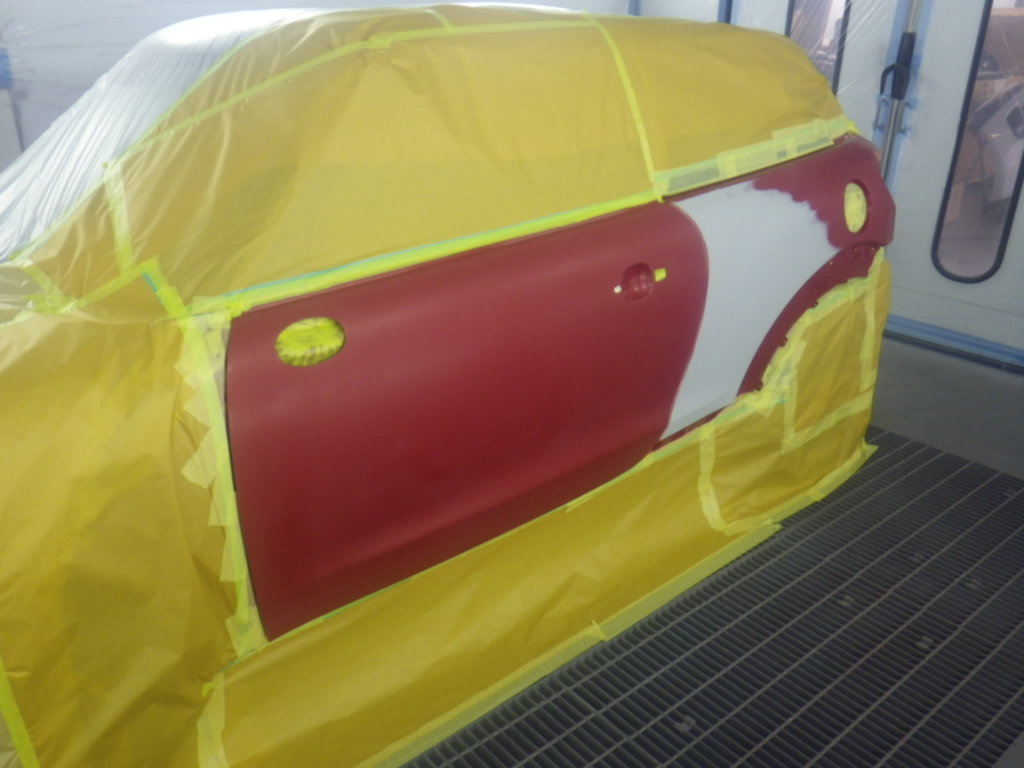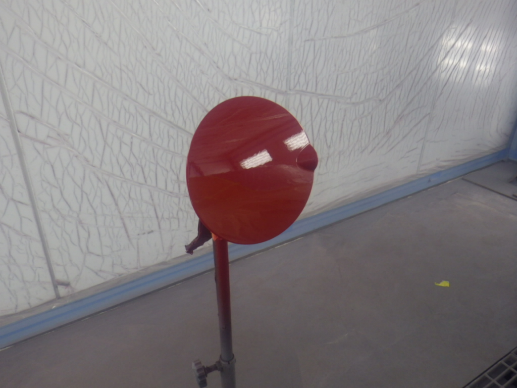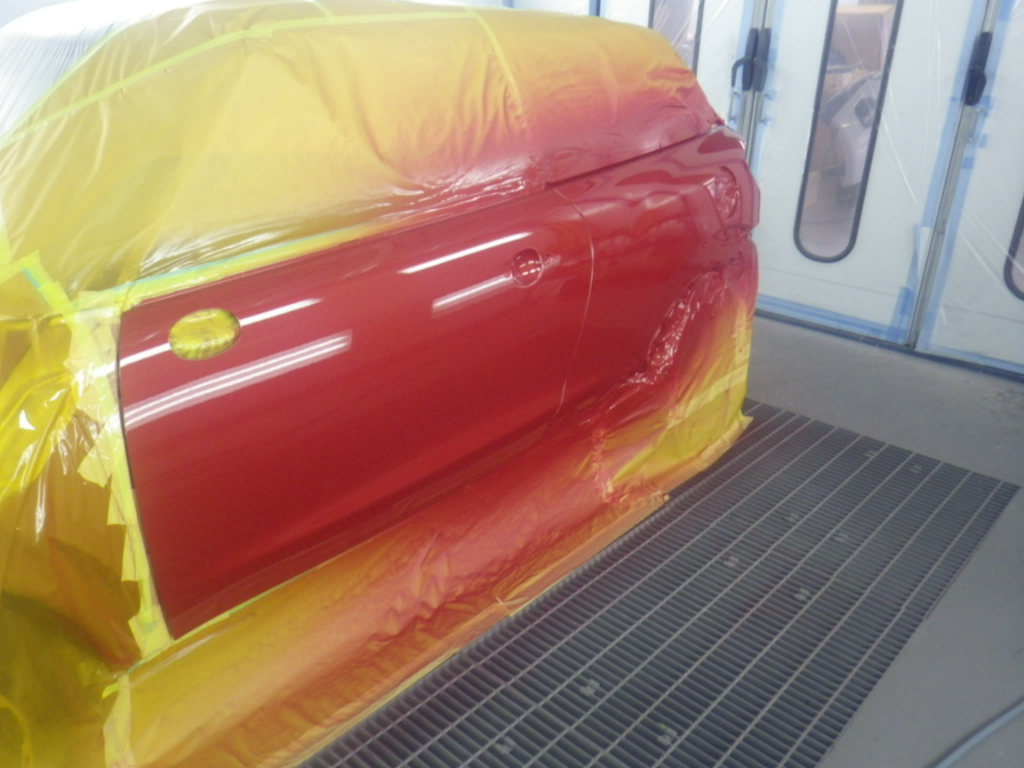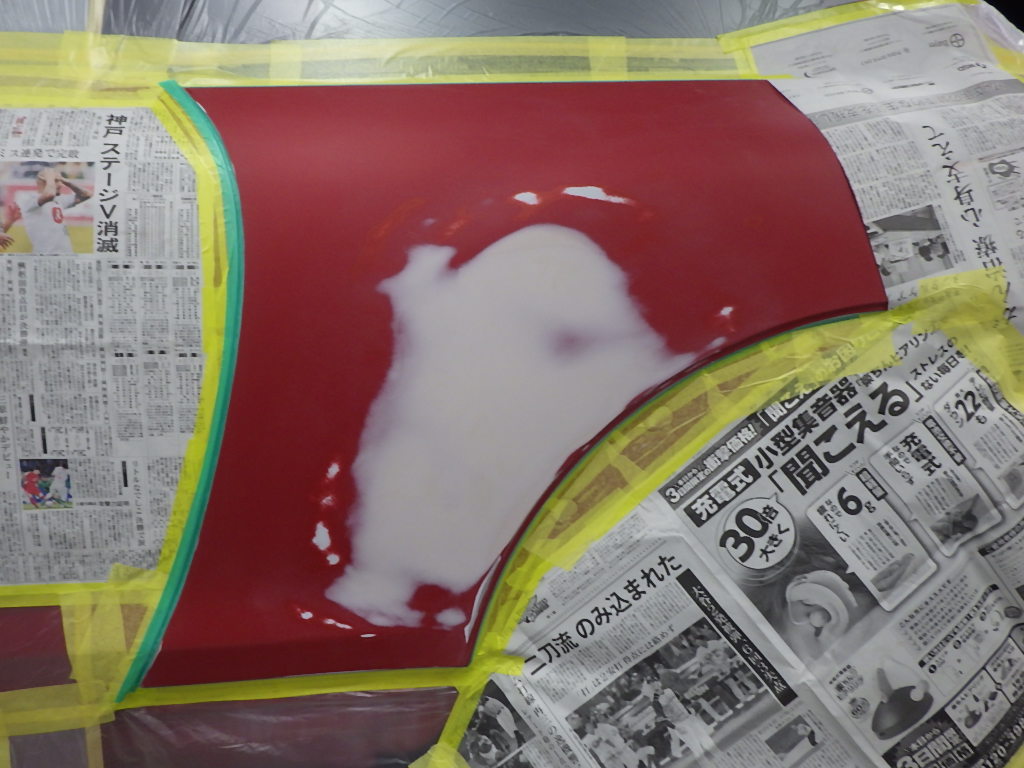 ベースコート(赤)、トップコート(クリアー)の順に塗装作業を行いました。