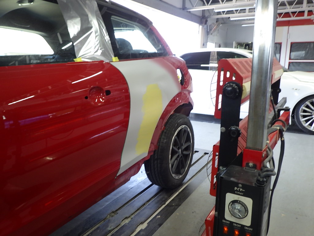 サフェーサーの塗布作業の後、遠赤外線を使用し、強制乾燥を行いました。