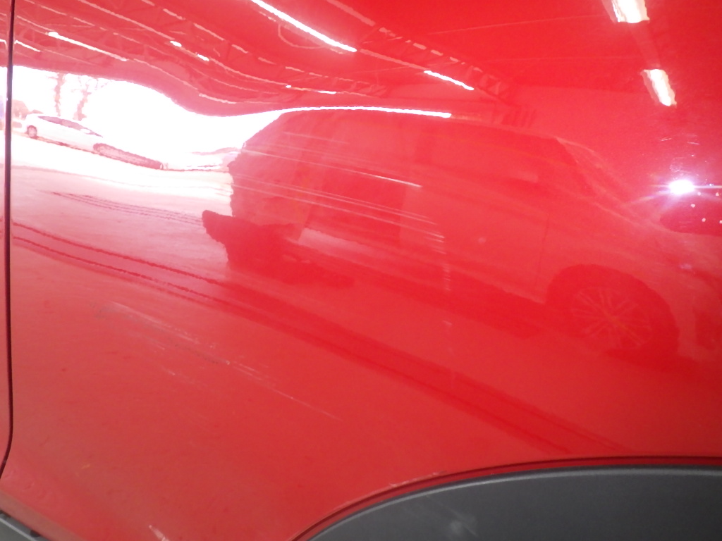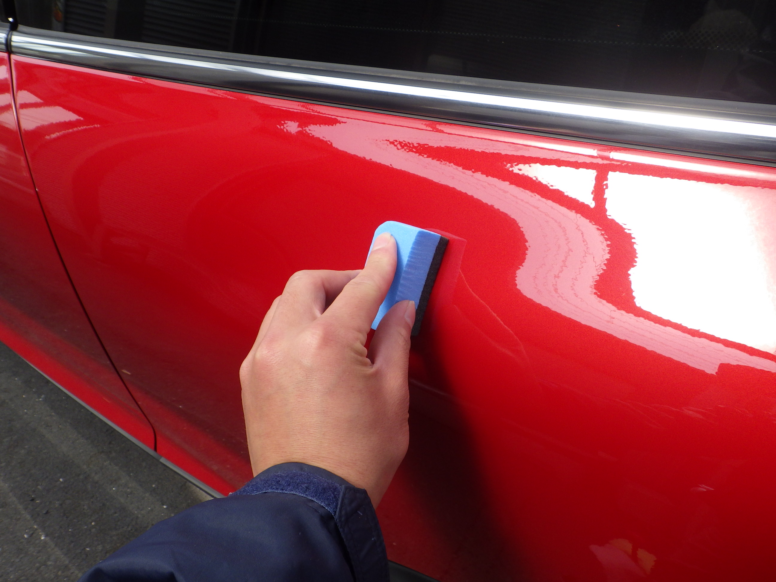 磨き作業の後、ペイント箇所に丁寧にコーティング剤の塗布作業を行い、乾燥後、