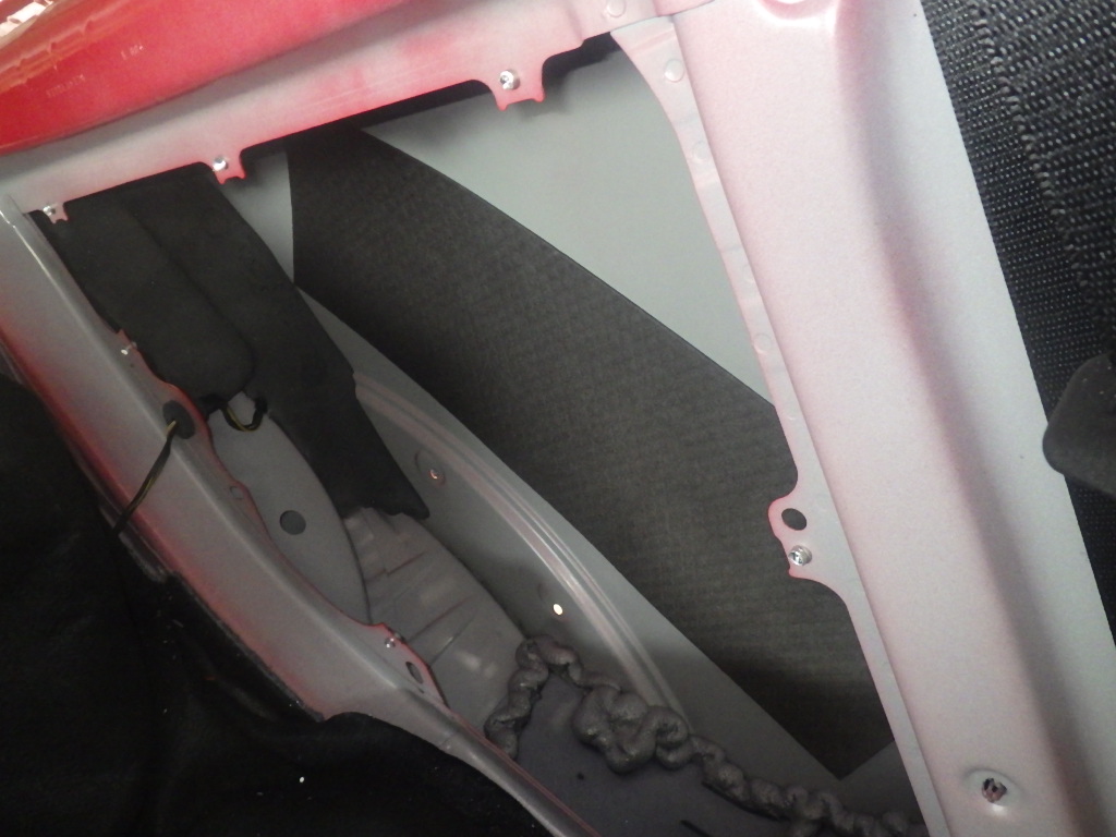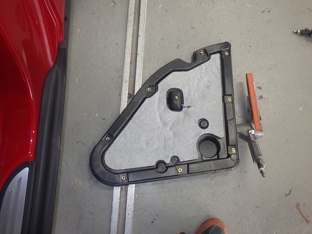 リアフェンダー板金作業を行う為、室内のトリムの取り外し作業を行いました。
