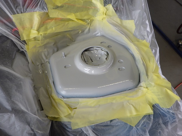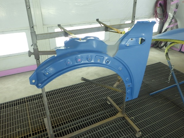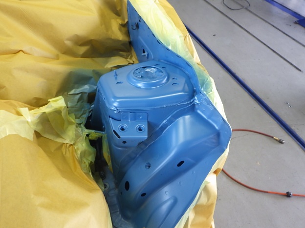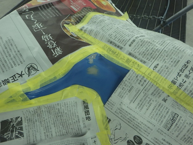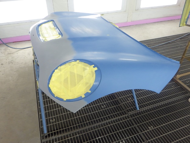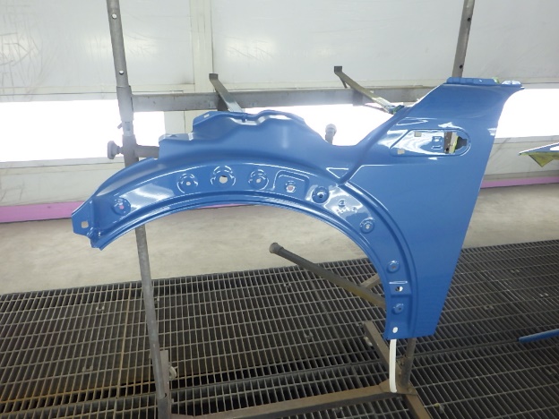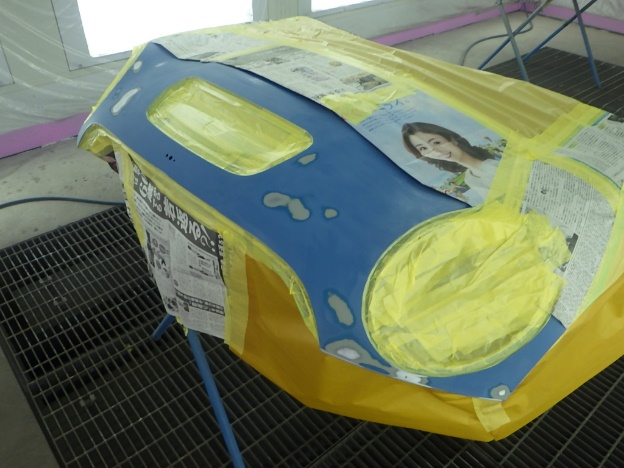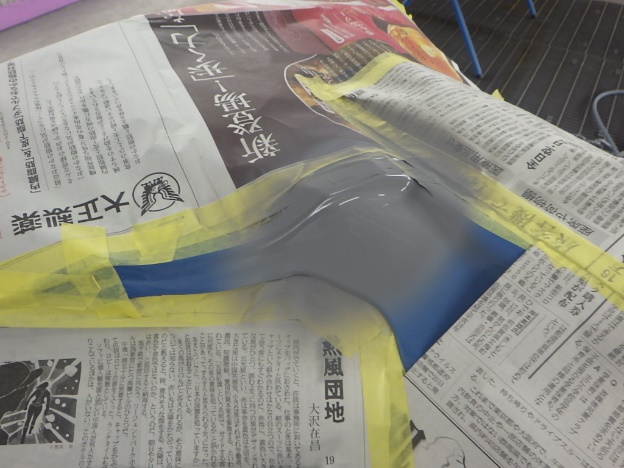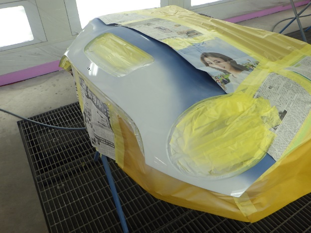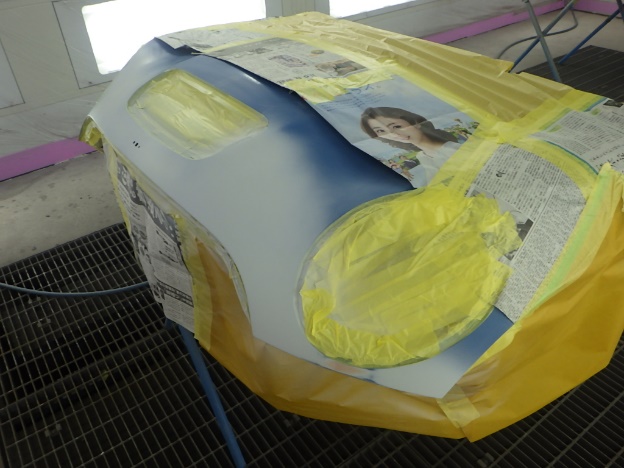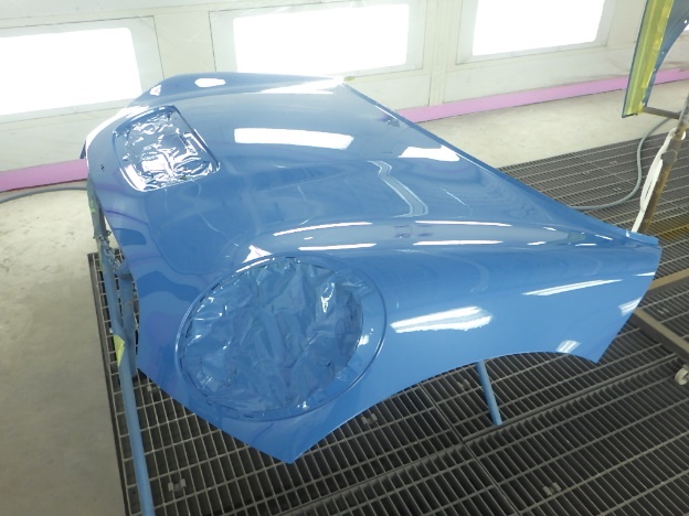 ベースコート(青)、トップコート(クリヤー)の順に塗装作業を行いました。