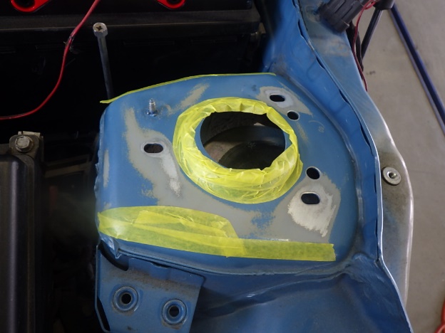 分解作業の後、ストラット取り付け箇所の修正作業、脱脂作業、エアブローを行い、