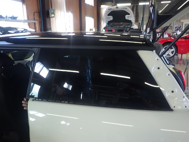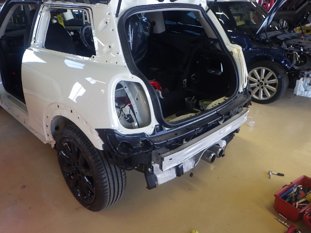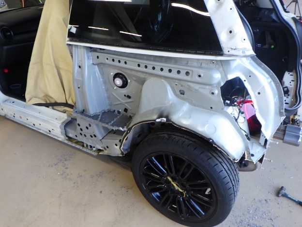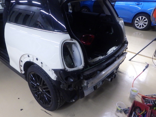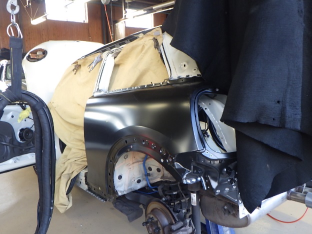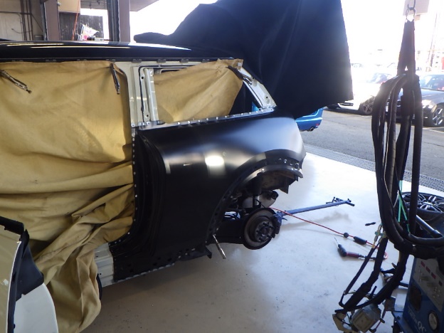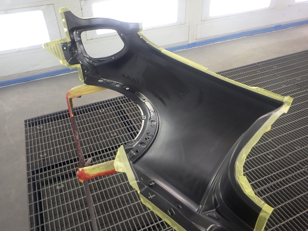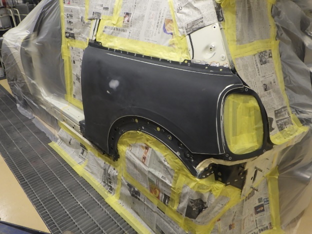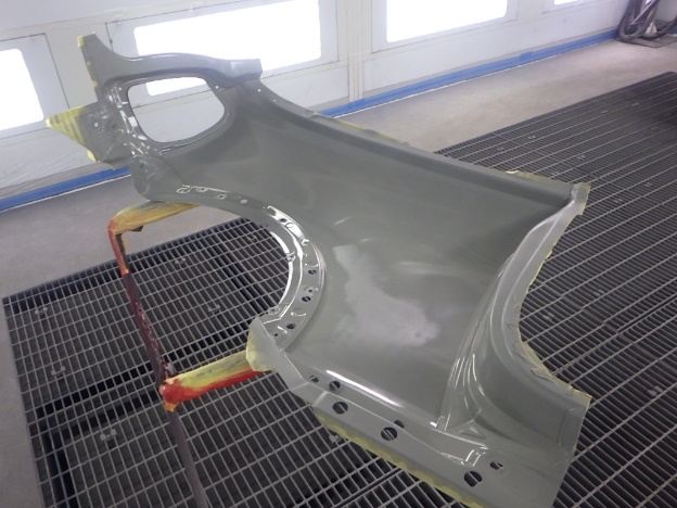 切り離し作業の後、新品パネルの内板の塗装作業を行いました。