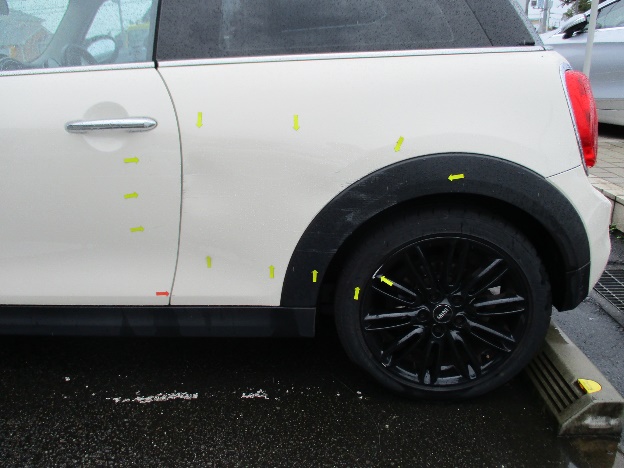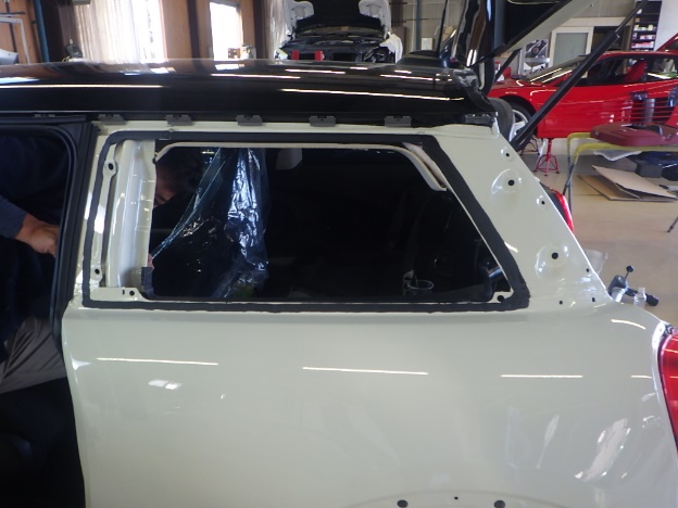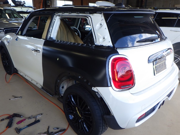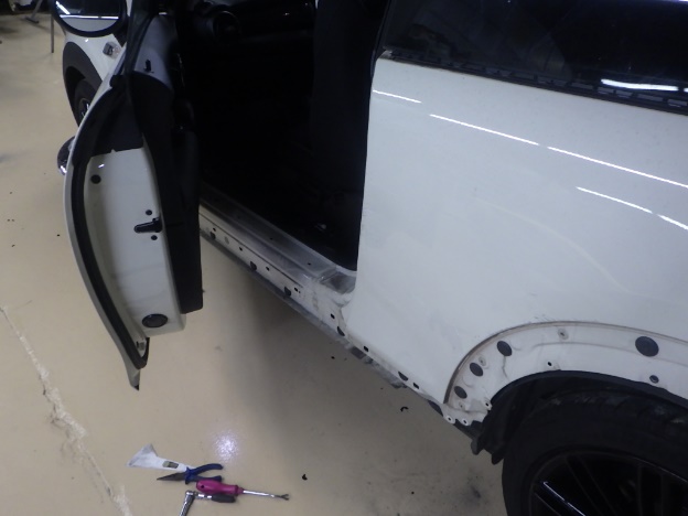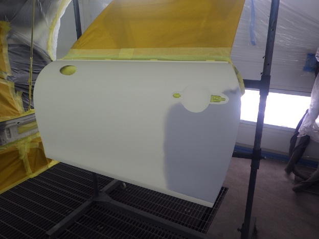 ドアの損傷箇所の修正作業、マスキング作業、脱脂作業を行い、