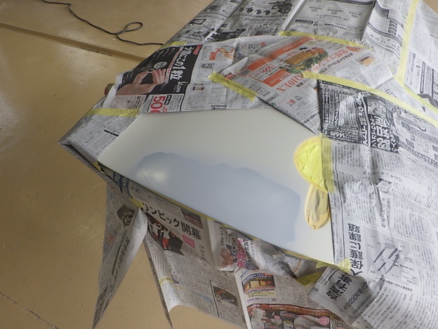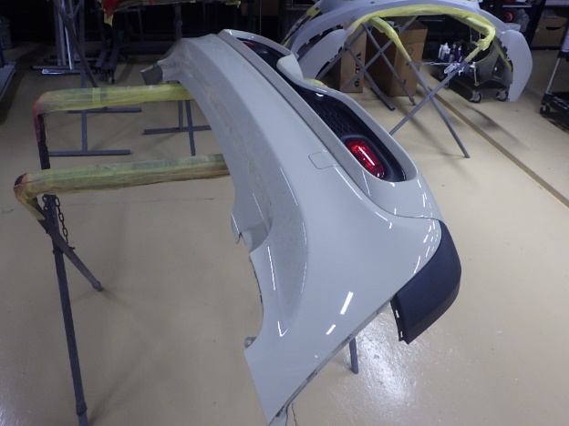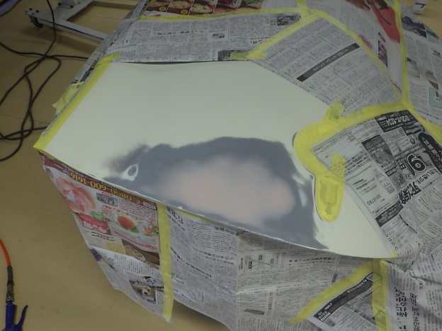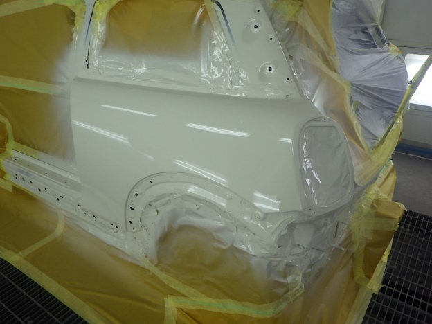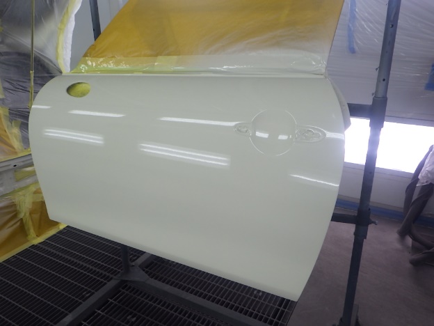 ベースコート(白)、トップコート(クリヤー)の順に塗装作業を行いました。