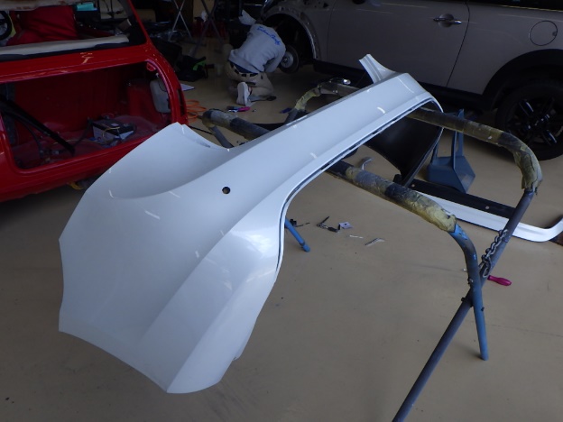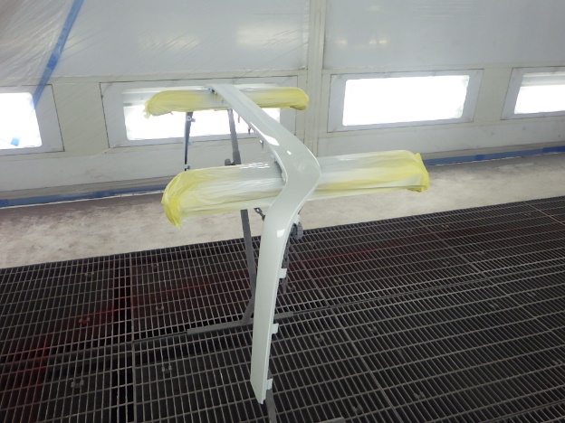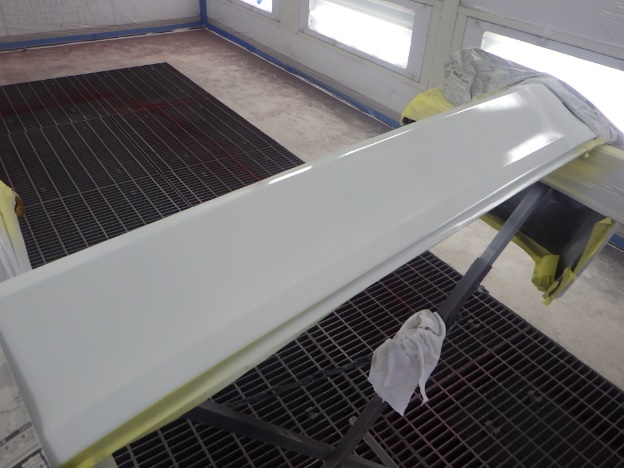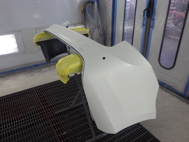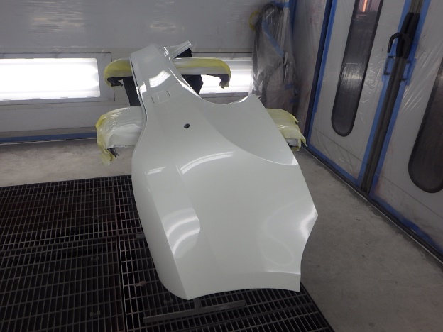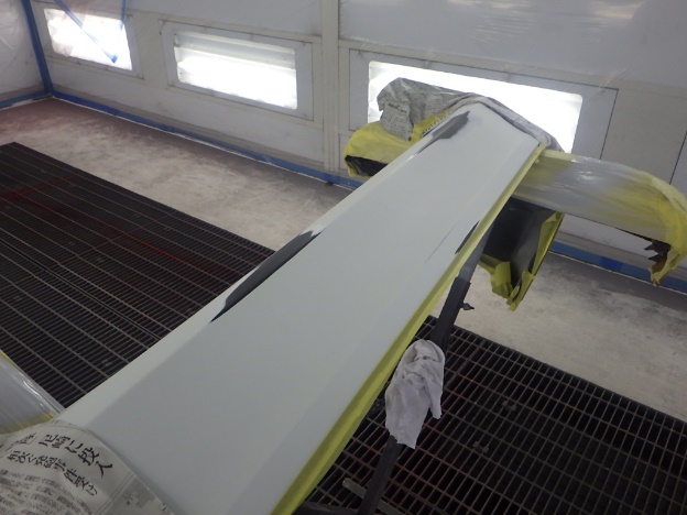 ベースコート(白、パール)、トップコート(クリヤー)の順に塗装作業を行いました。
