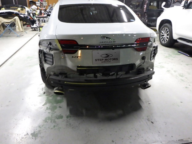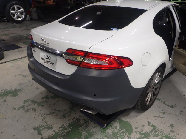 【鈑金塗装】【事故】兵庫県加東市、S様、2016y、ジャガー、XF、リアバンパー損傷修理レポートです!ありがとうございました。