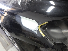仮合わせ作業の後、リアフェンダーの板金作業、パテ修正作業を行いました。