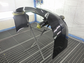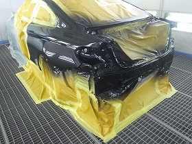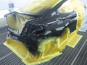 その後、ベースコート(黒)、トップコート(クリヤー)の順に塗装作業を行いました。