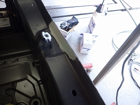 分解作業の後、タワーを使用してバックパネルの修正作業を行い、新品部品の仮合わせ作業を行いました。