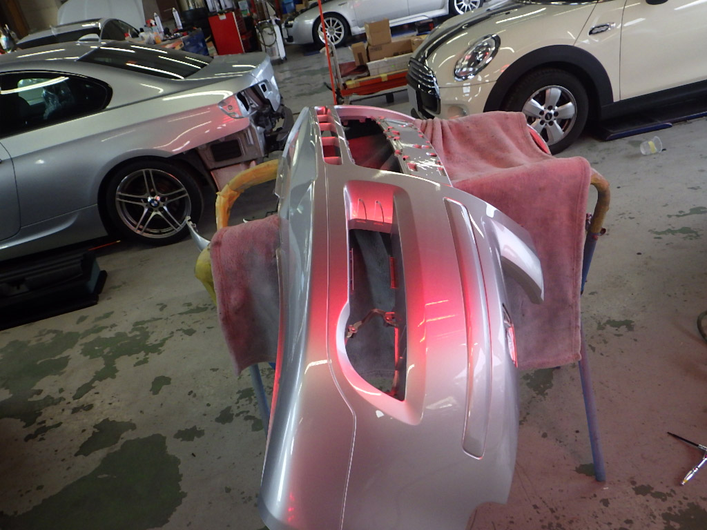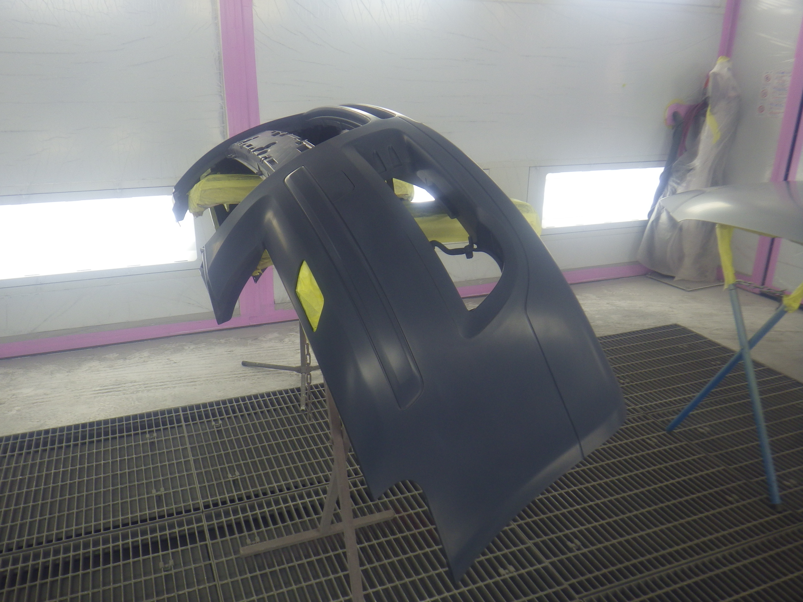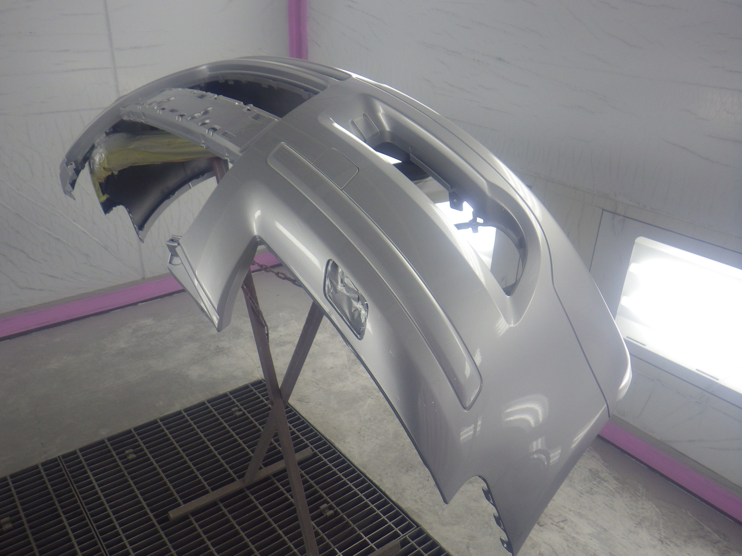 新品バンパーに密着性向上の為、ウォッシュプライマーの塗布作業を行いました。