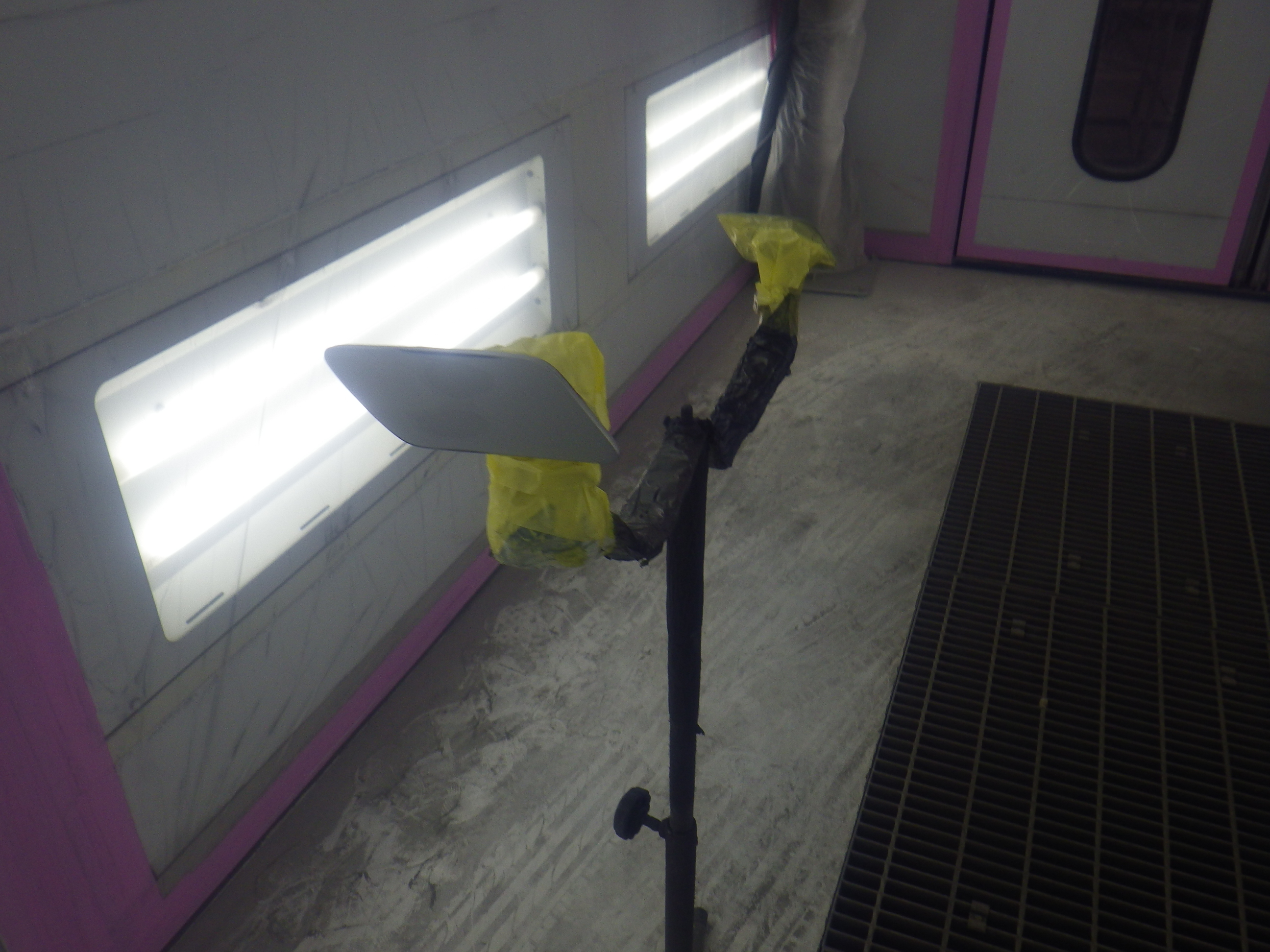 乾燥後、塗装準備(足付け、マスキング、脱脂、エアブロー)を行い、