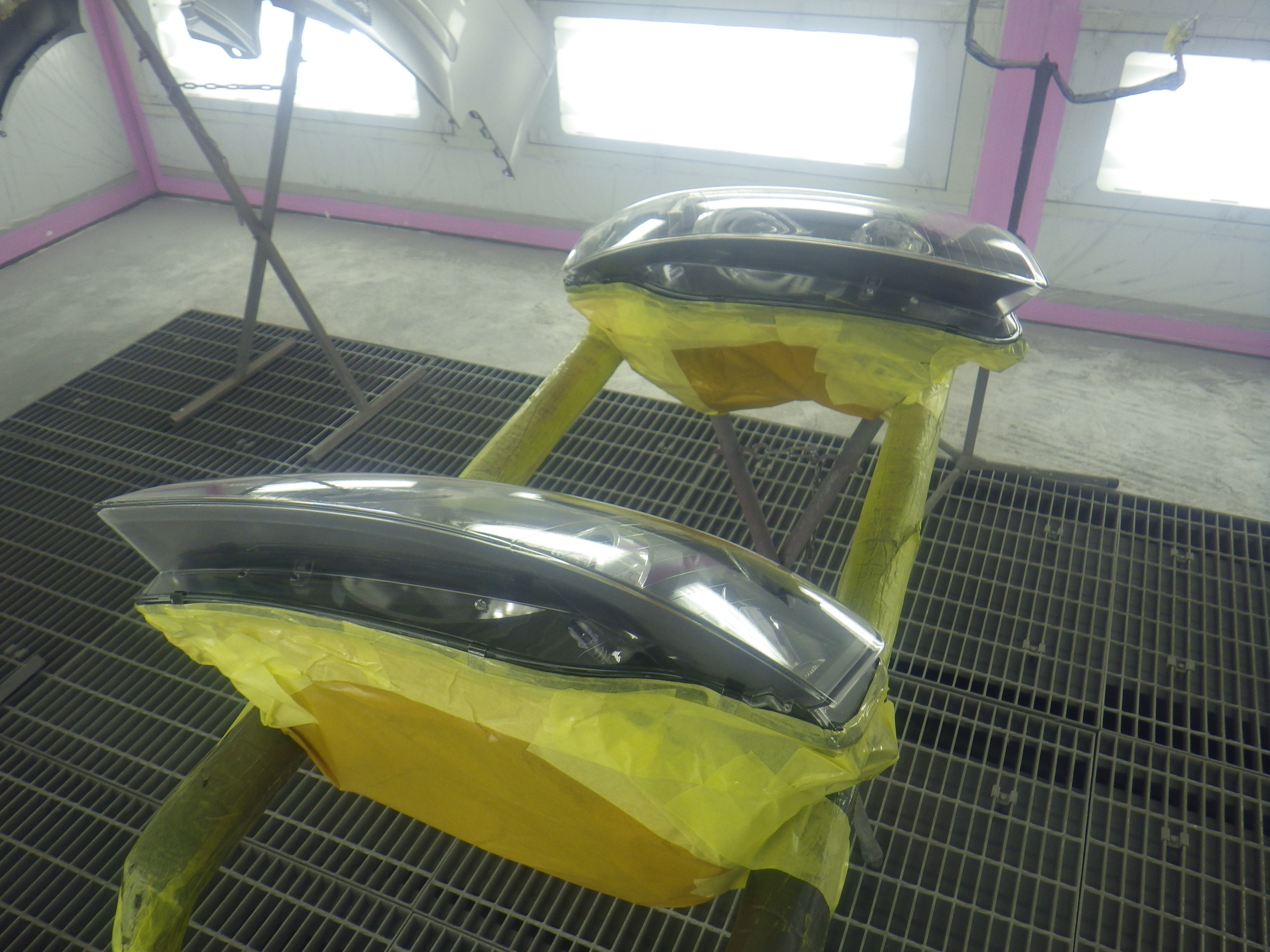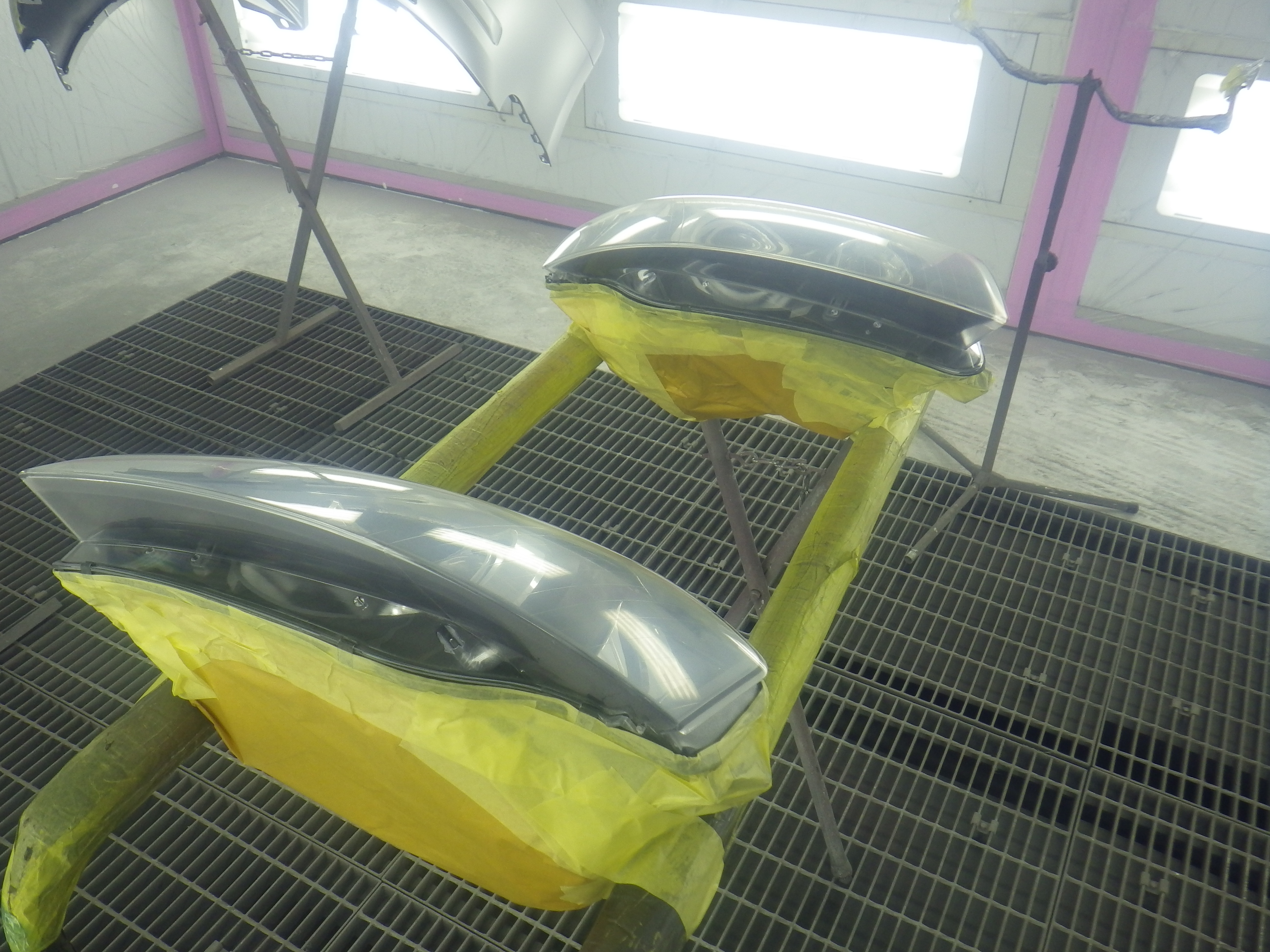 ヘッドライトにもクリヤーコートのペイント作業を行いました。