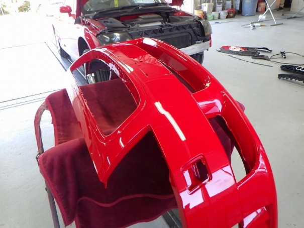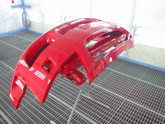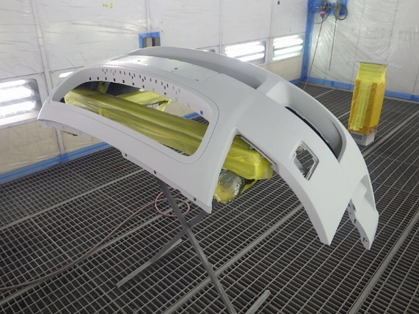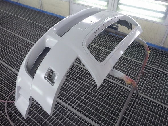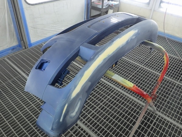中古バンパー修正作業の後サフェーサーの塗装作業。