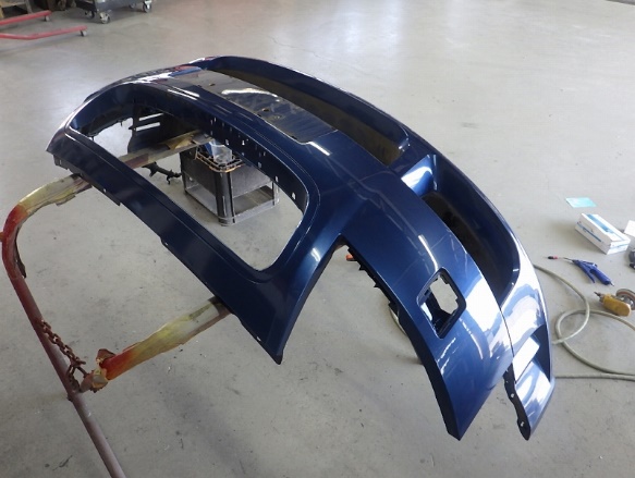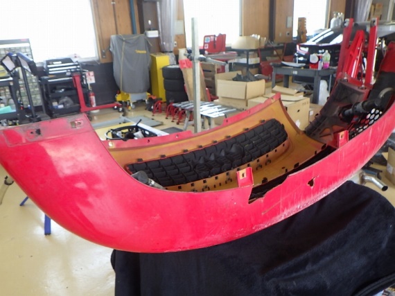 中古フロントバンパーの分解作業。