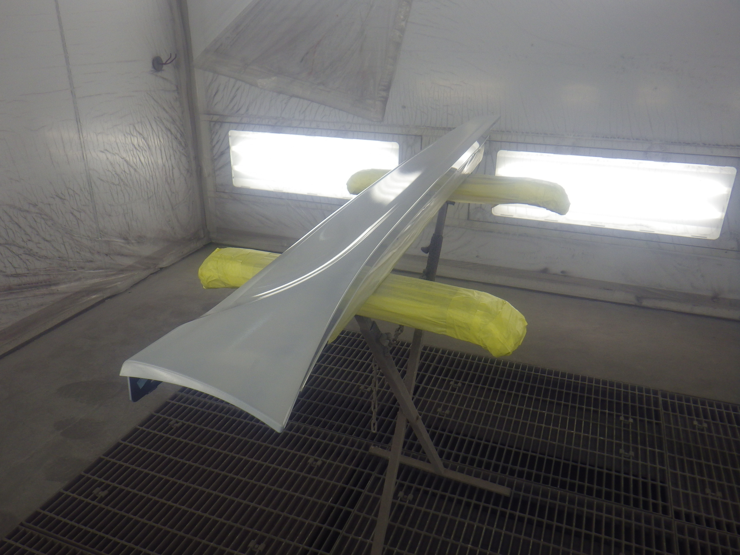 その後、ベースコート(白)、トップコート(クリヤー)の順に塗装作業を行いました。