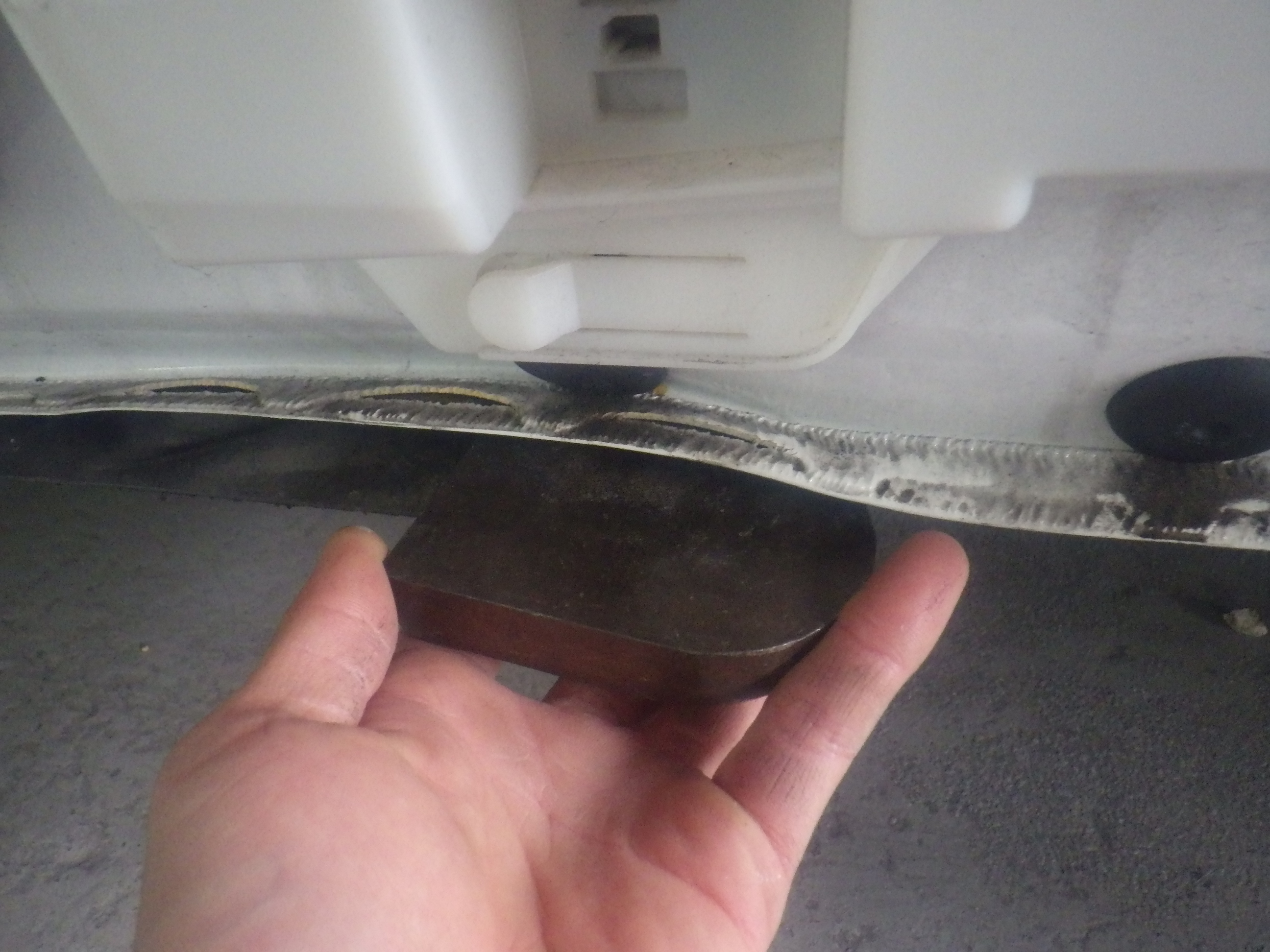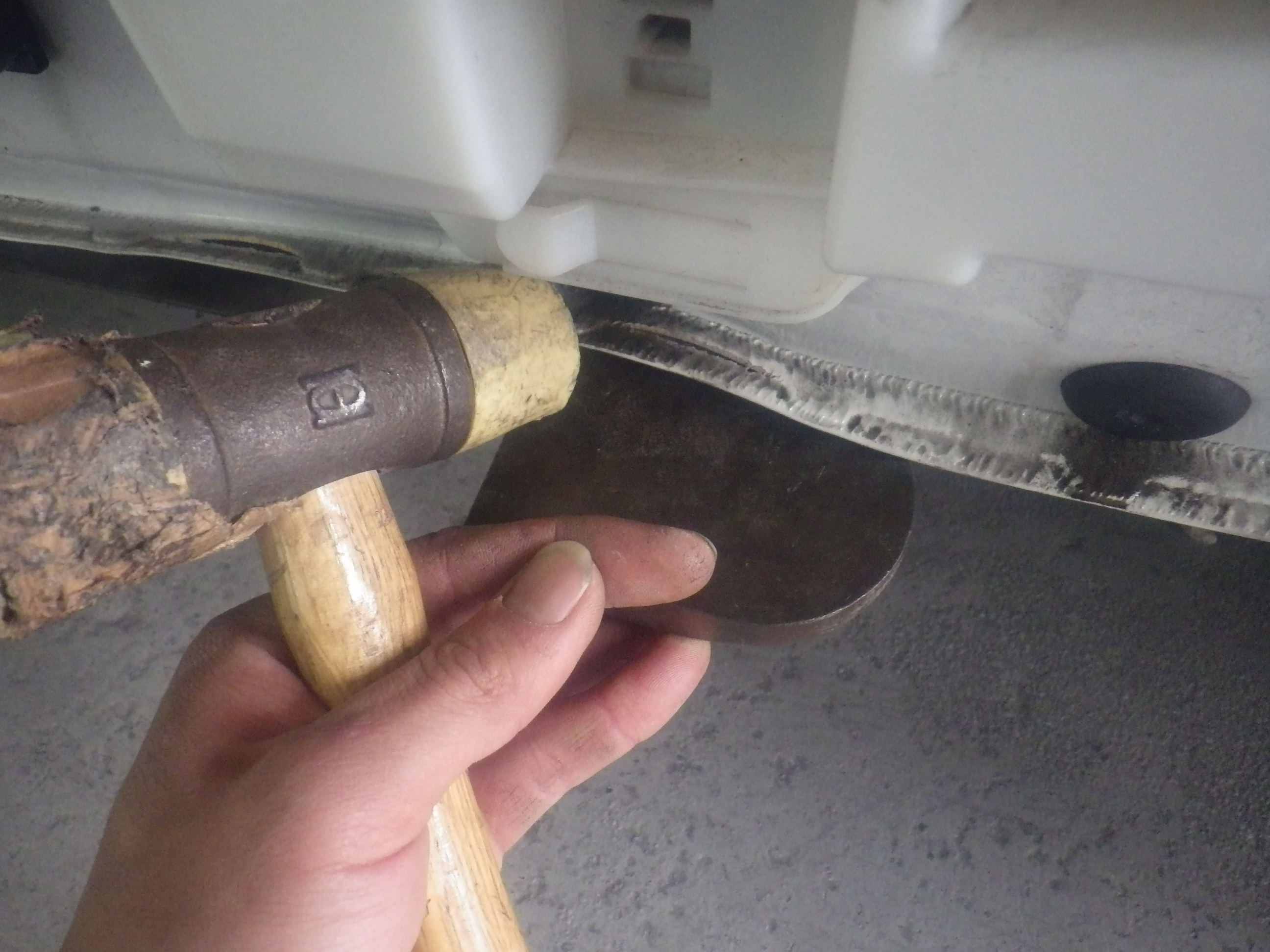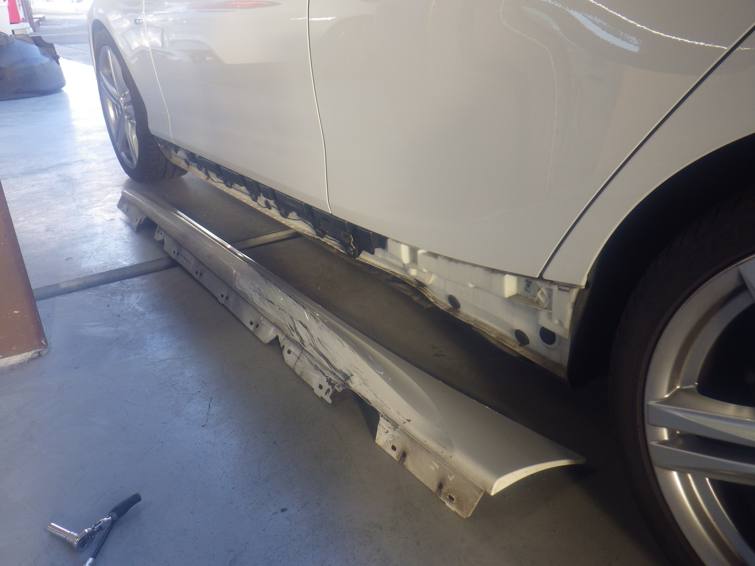 交換作業の後、ロッカーパネルの板金作業を行いました。