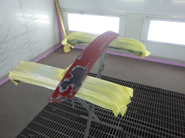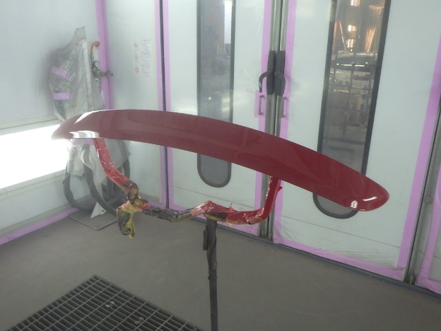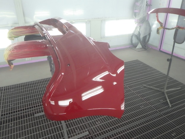 ベースコート(赤)、トップコート(クリヤー)の順に塗装作業を行いました。