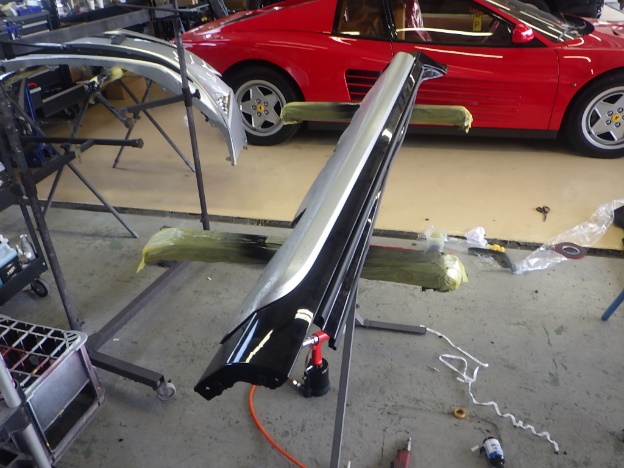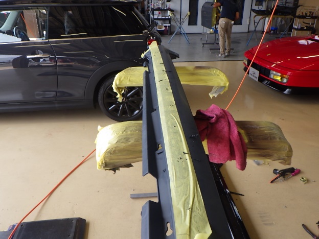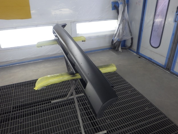 ベースコート(黒)、トップコート(クリヤー)の順に塗装作業を行いました。