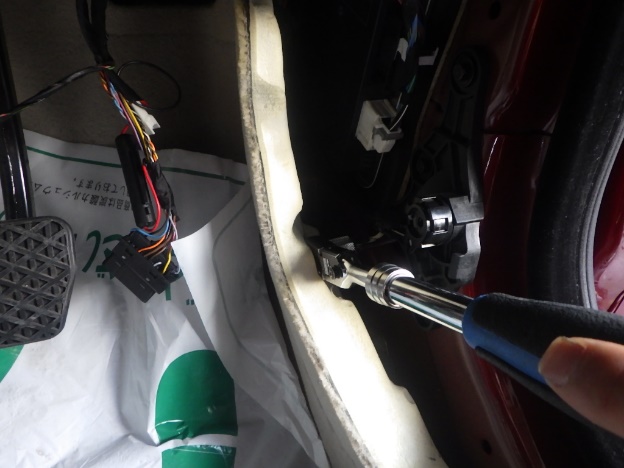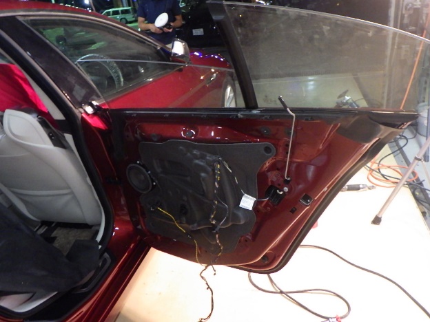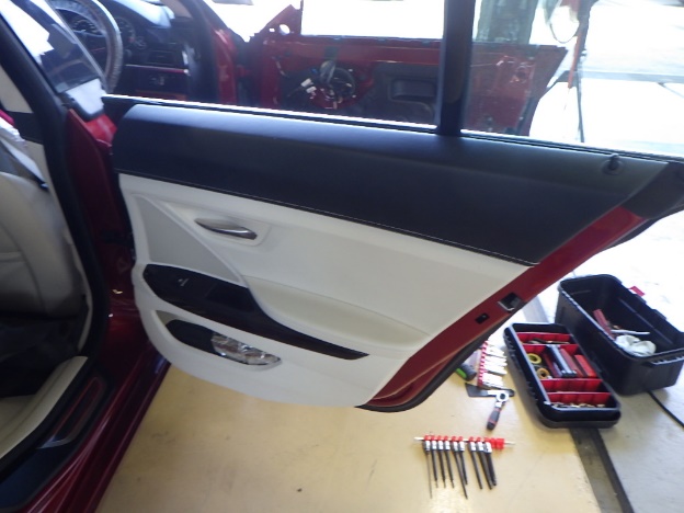 分解作業の後、新品パネルの仮合せ作業、ヒンジの調整作業を行いました。