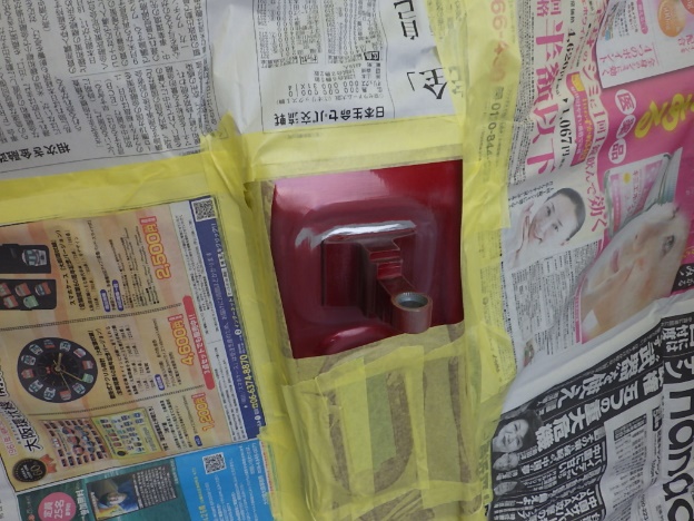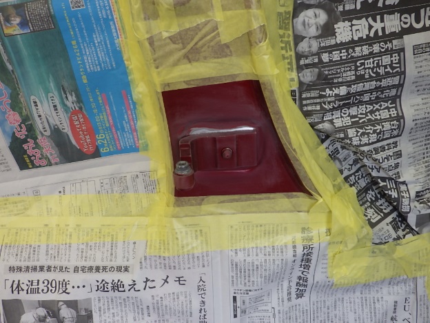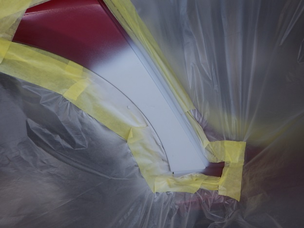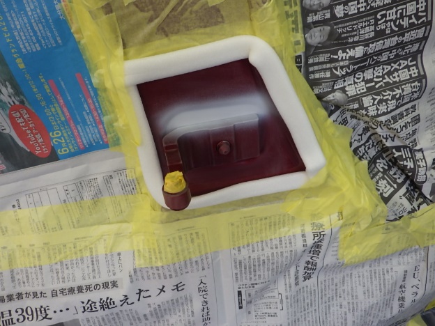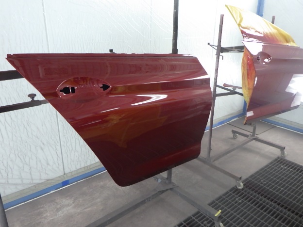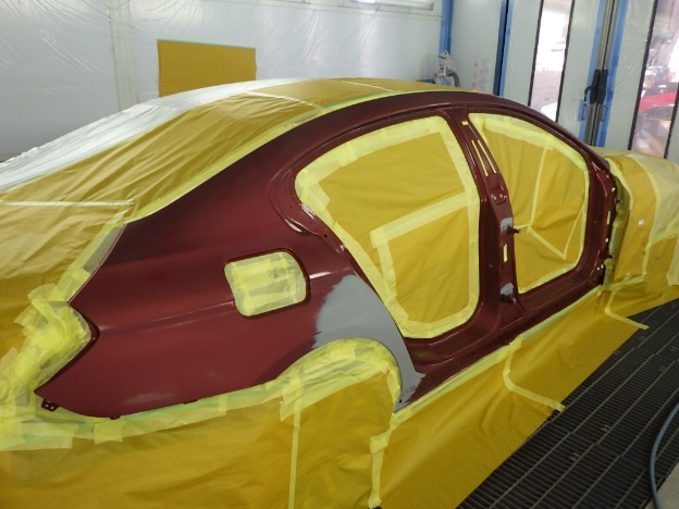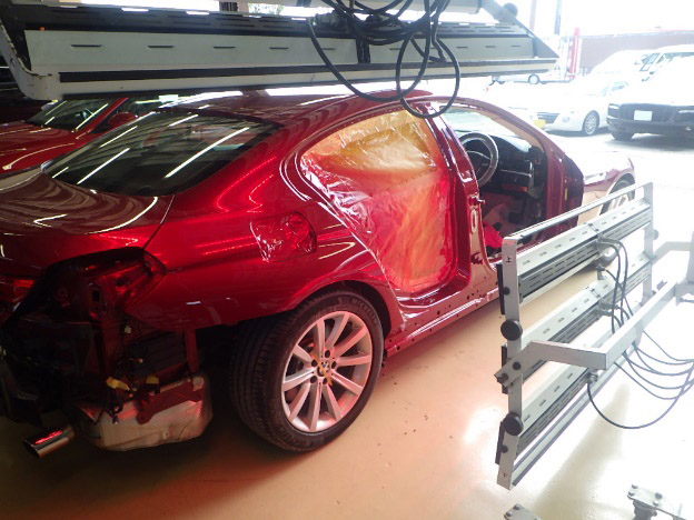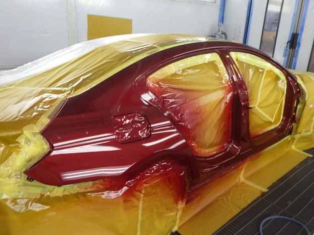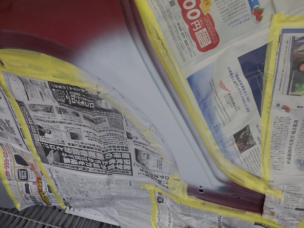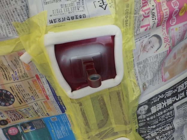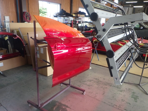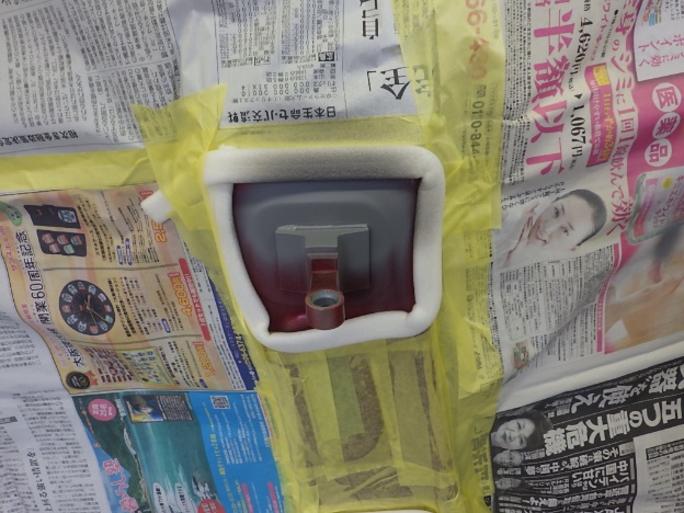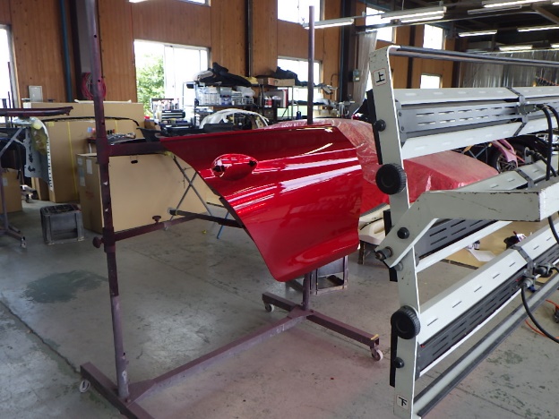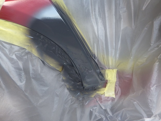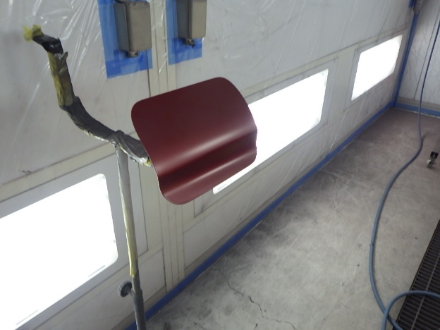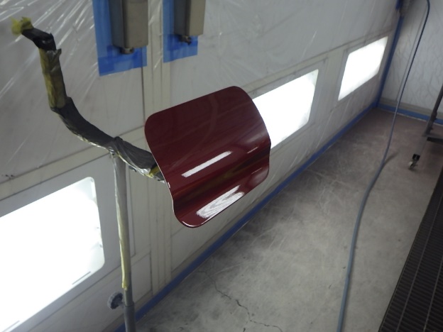 ベースコート(赤)、トップコート(クリヤー)の順に塗装作業を行いました。