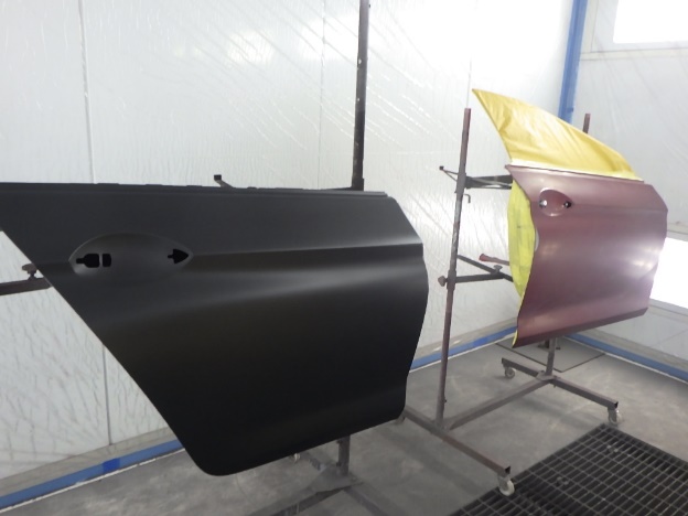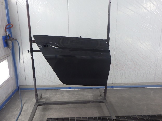 板金作業の後、マスキング作業、脱脂作業、エアブローを行い、