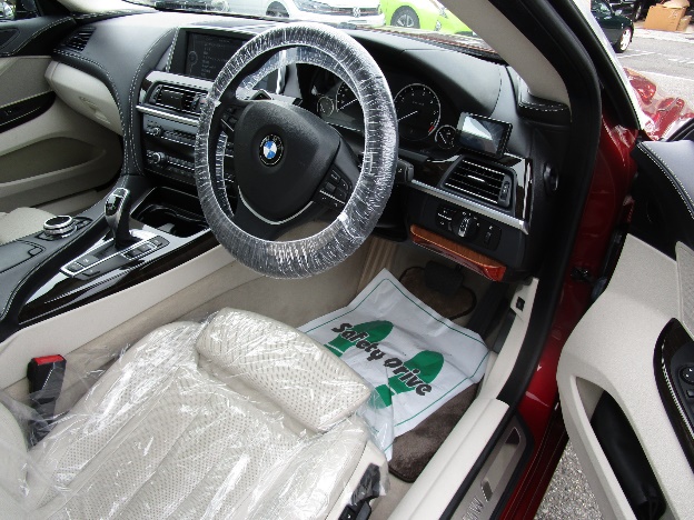 入庫確認作業の後、キズ、汚れ防止の為、シートカバー、ハンドルカバー、