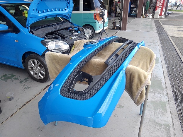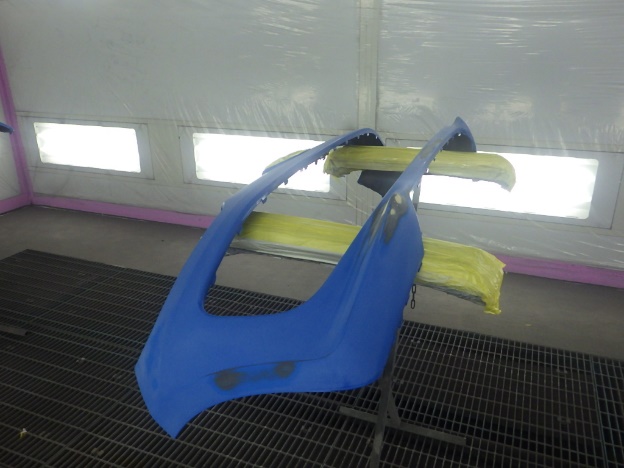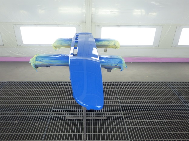 ベースコート(青)、トップコート(クリヤー)の順に塗装作業を行いました。