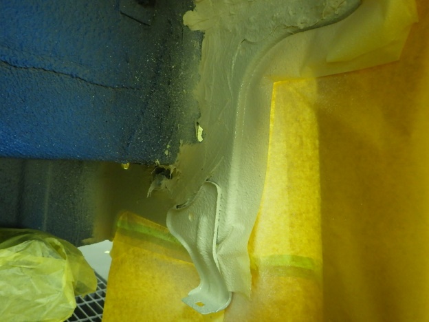 サフェーサー乾燥の後、足付け作業、マスキング作業、脱脂作業、エアブロー、